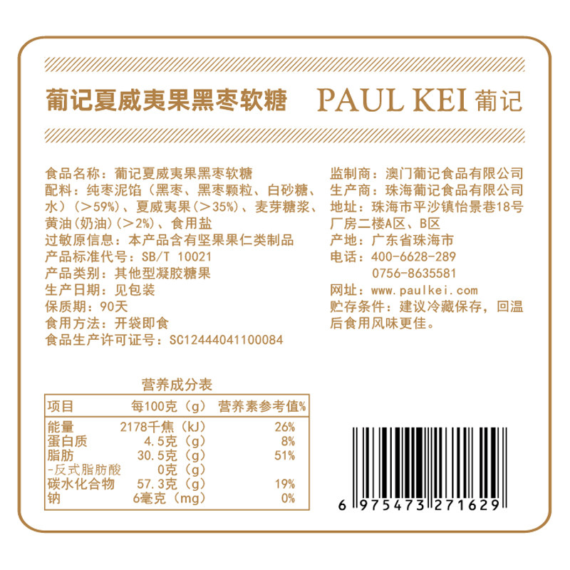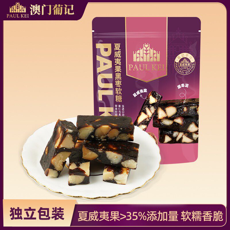 澳门葡记夏威夷果黑枣软糖300g 手工坚果喜糖果特产零食品伴手礼