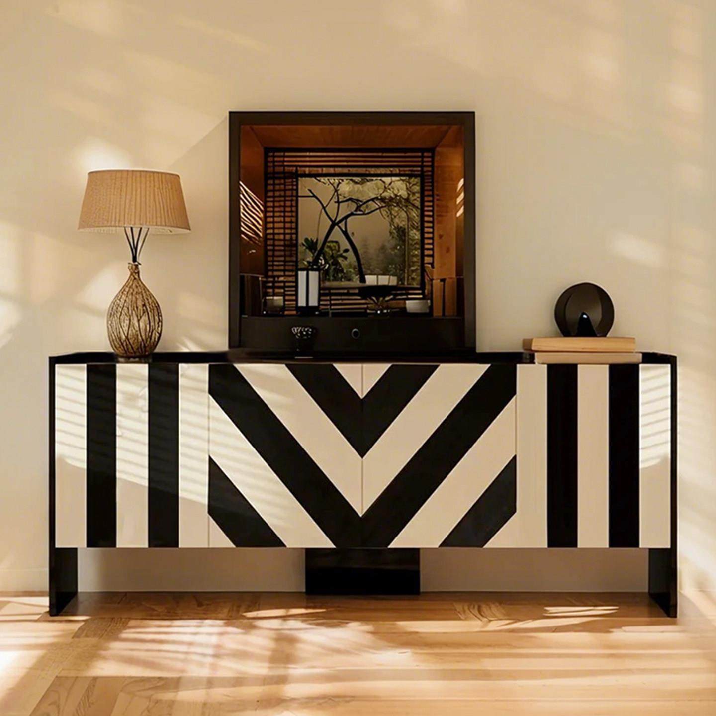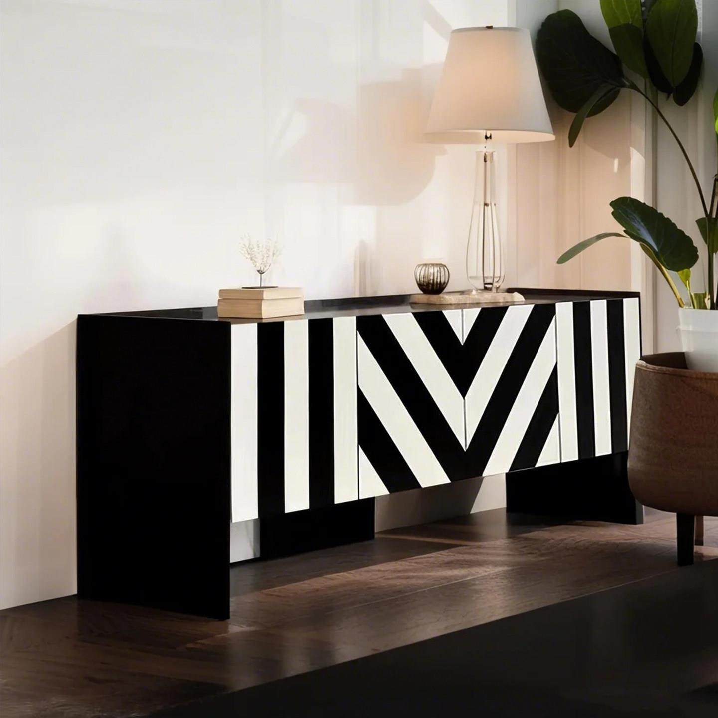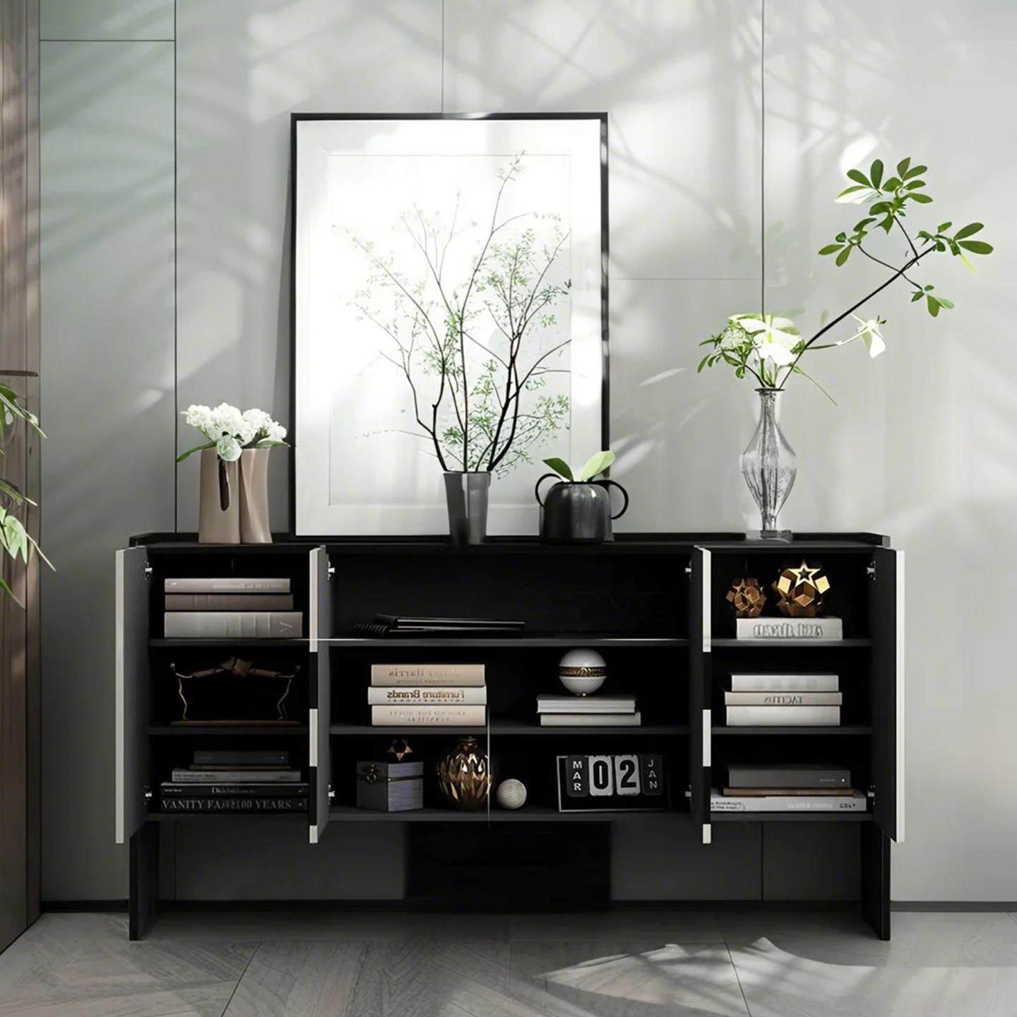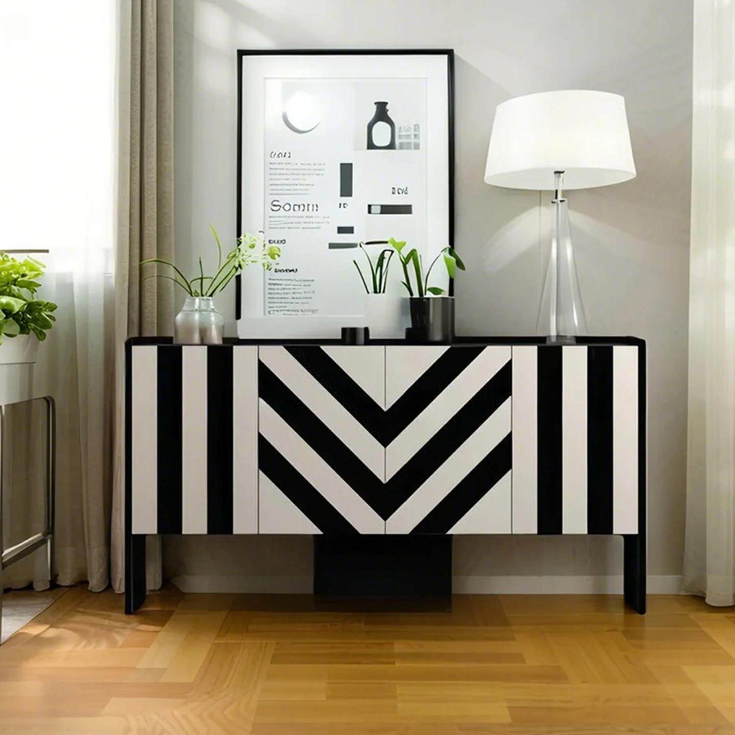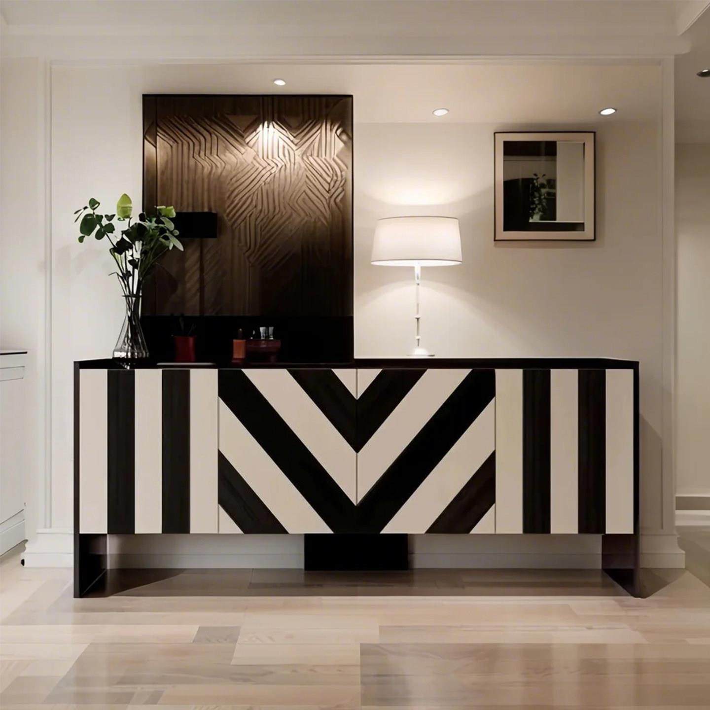 轻奢风黑白玄关柜北欧设计师艺术装饰柜家用餐柜门厅柜入户鞋柜