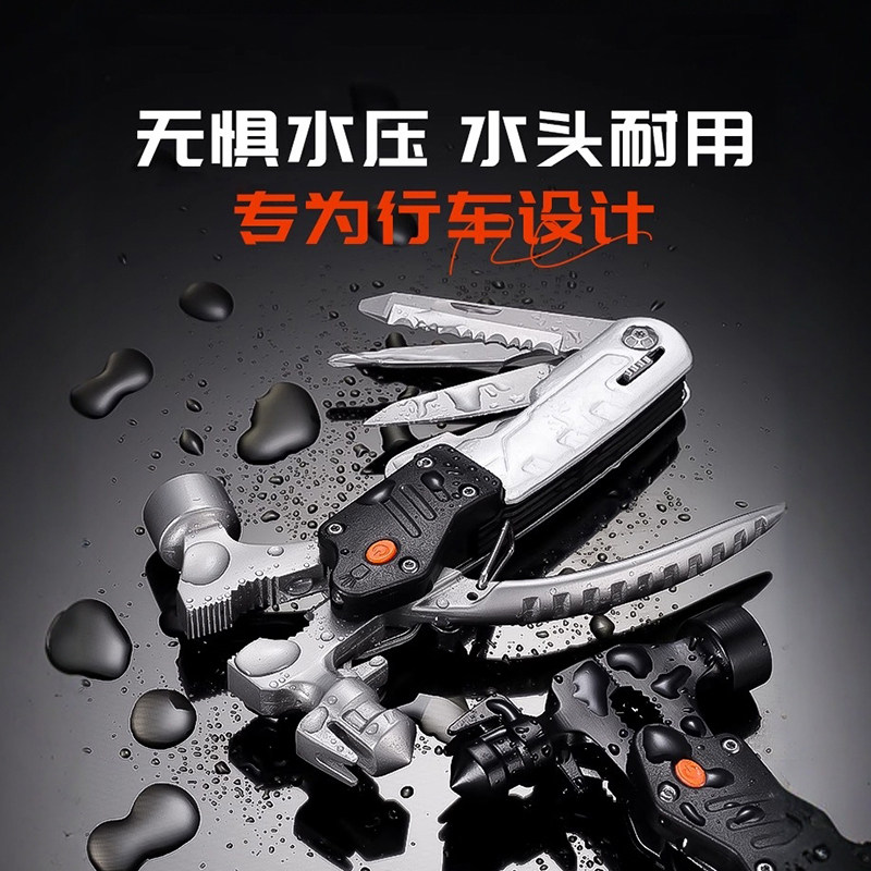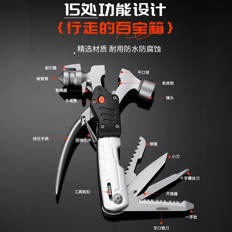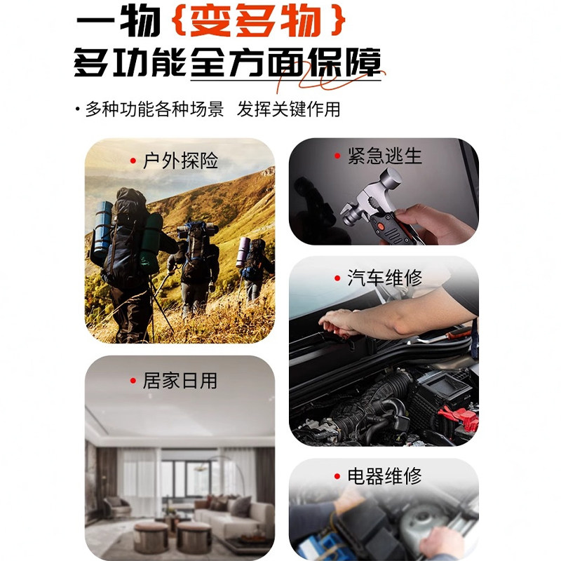 户外多功能钳露营锤汽车破窗锤逃生安全锤割绳器带电筒工具刀套装