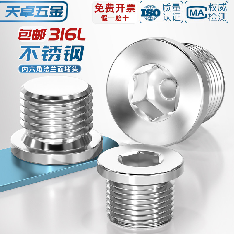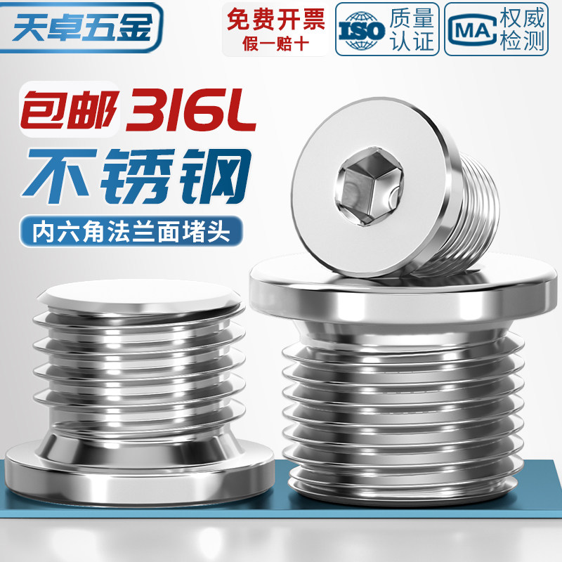316L不锈钢带边管堵堵头内六角法兰面油塞闷头G1分2分4分6分1寸2