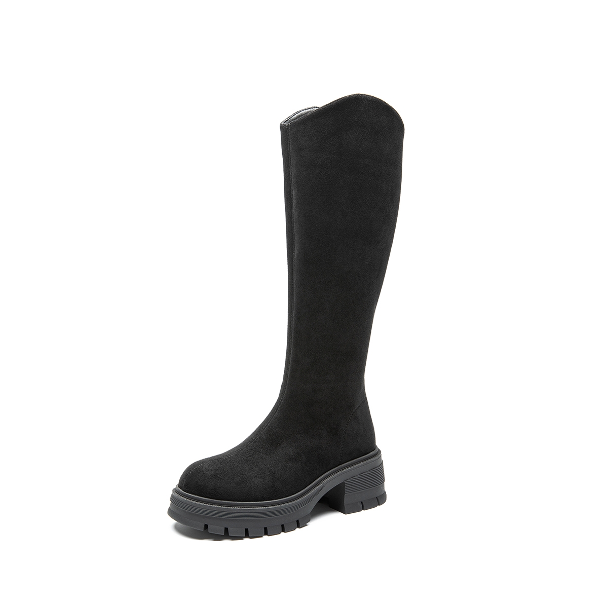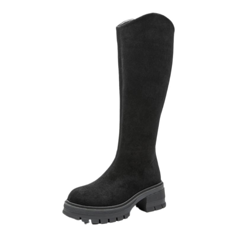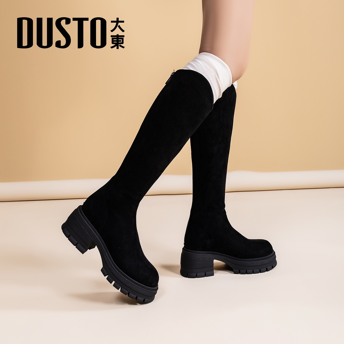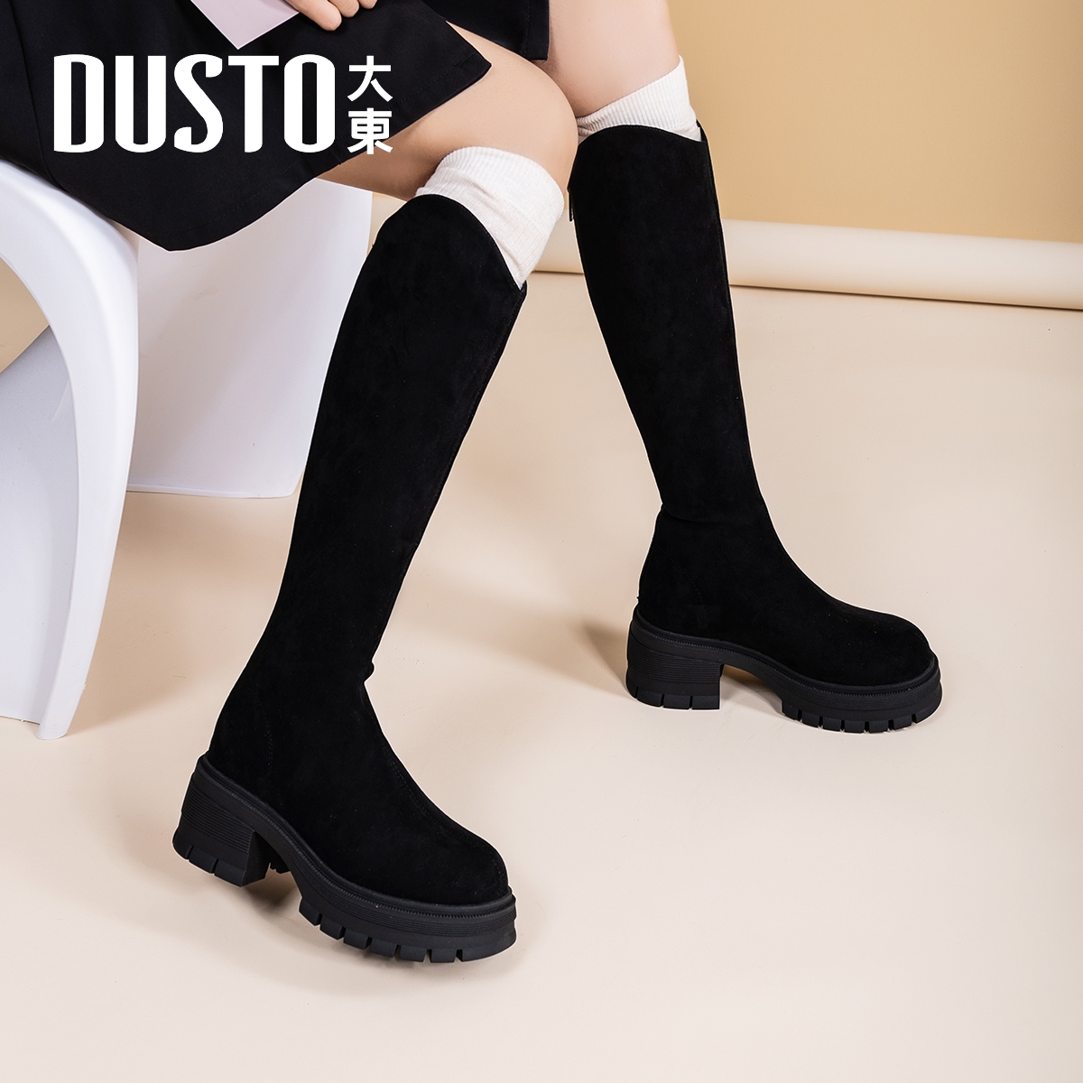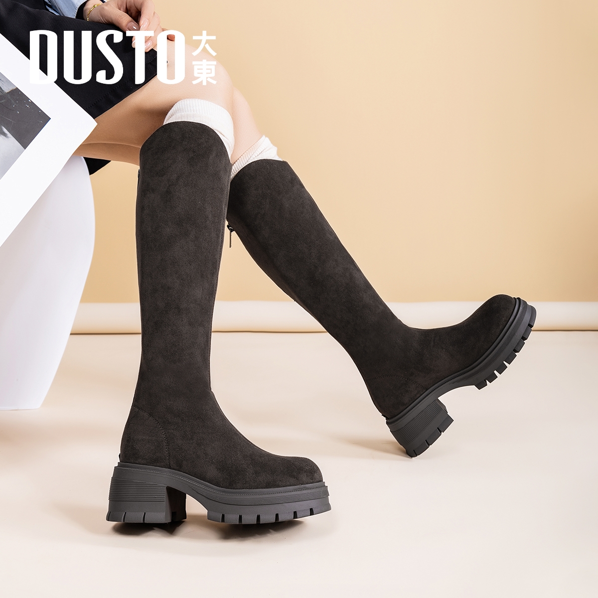 大东今年流行长筒靴女2025新款秋冬厚底小个子绒面长靴高筒骑士靴