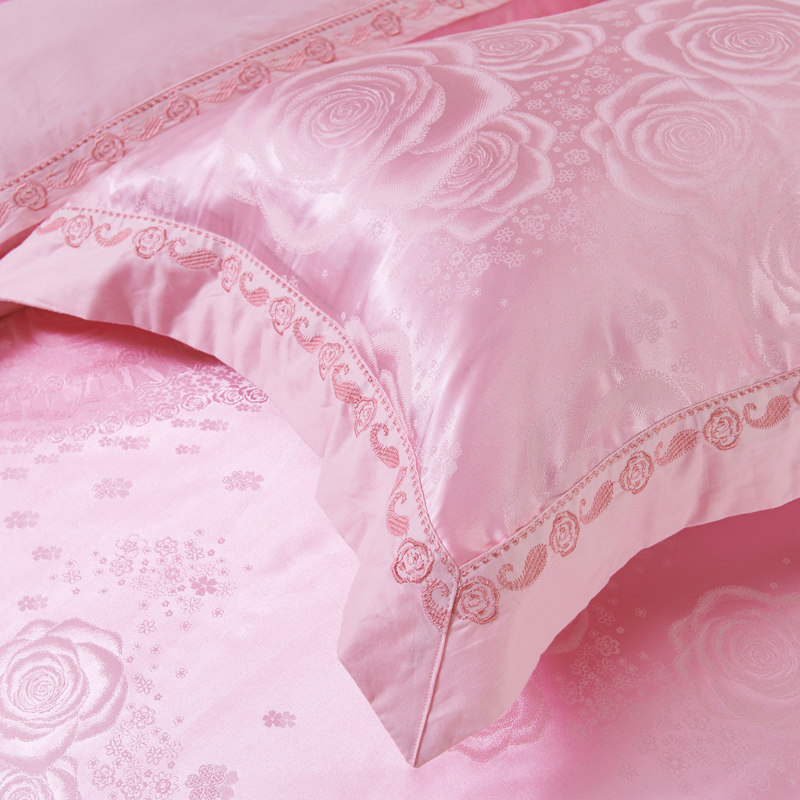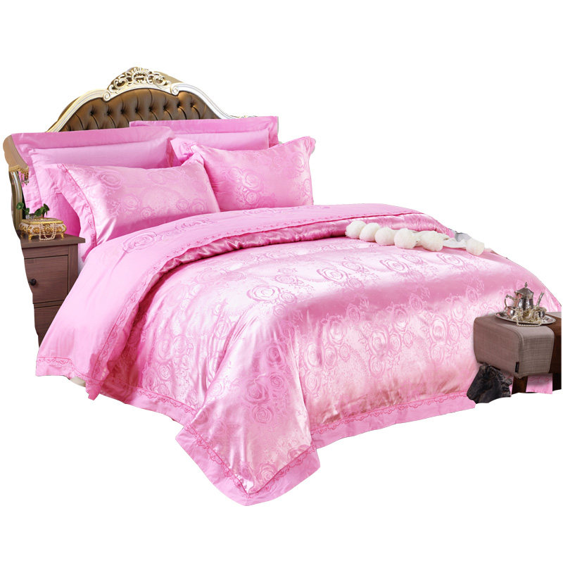 四件套床盖夹棉加厚提花婚庆床品套件加大1.8床送空调被皮革包装