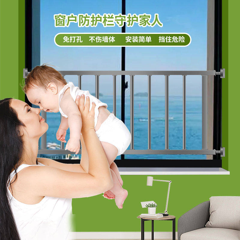 儿童安全防护栏窗户栏杆免打孔隐形防盗窗网室内阳台飘窗家用自装