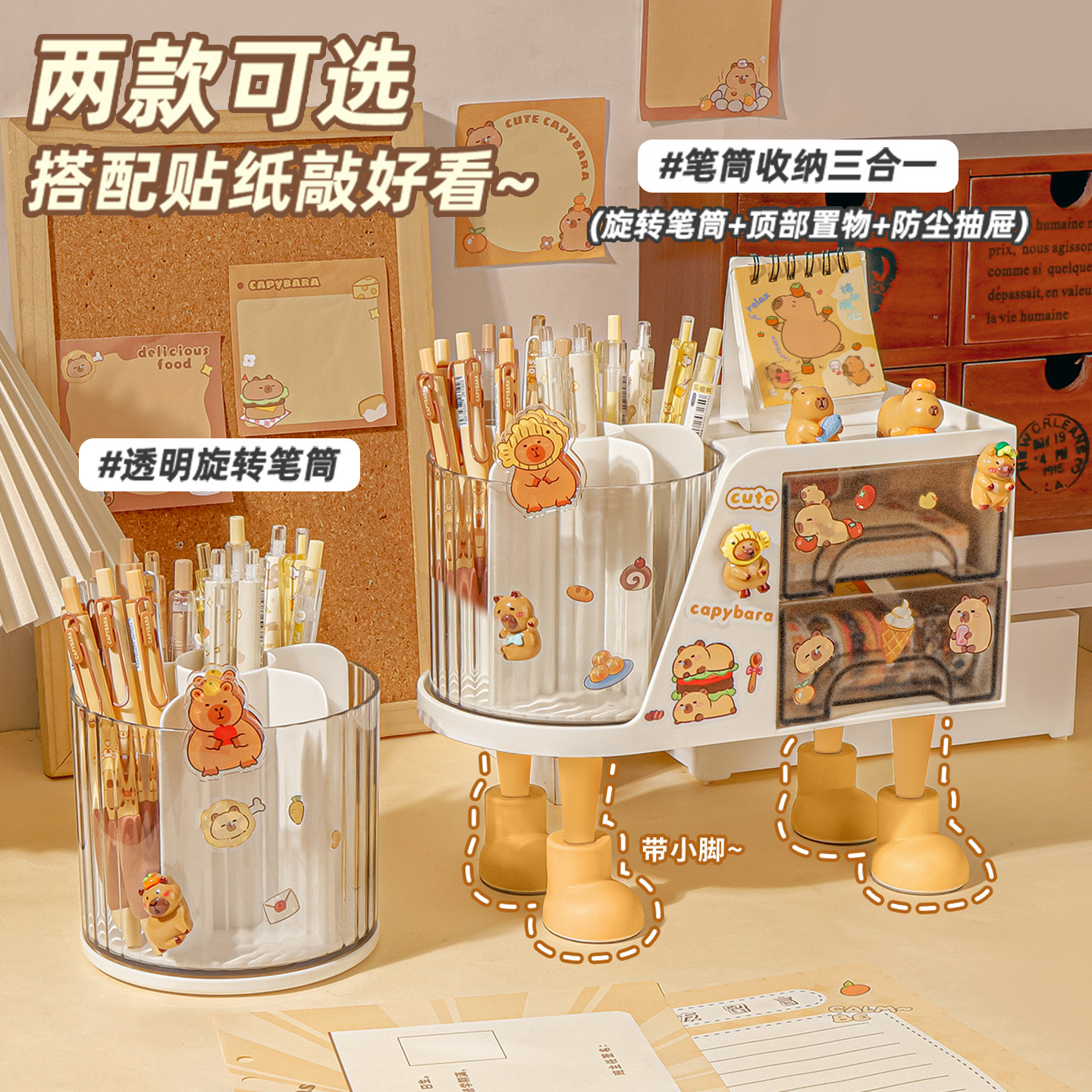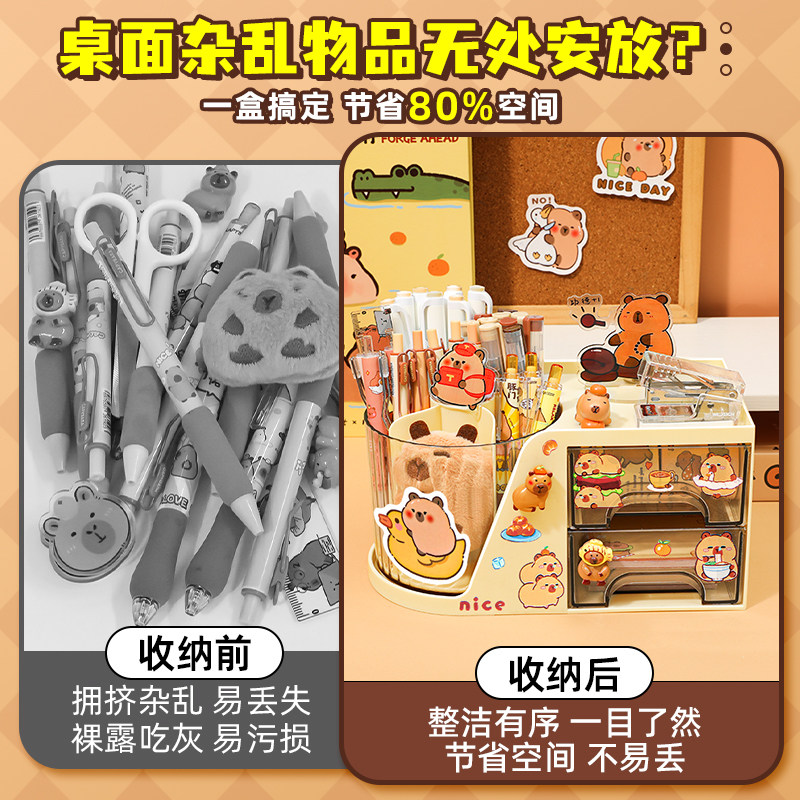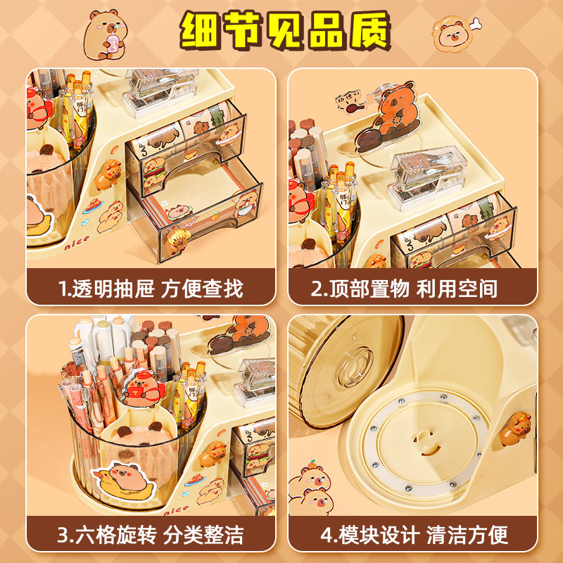芝士奶酪!笔筒收纳盒学生桌面旋转大容量超大笔桶儿童女孩男孩创意文具整理盒高颜值ins风斜插办公室置物架