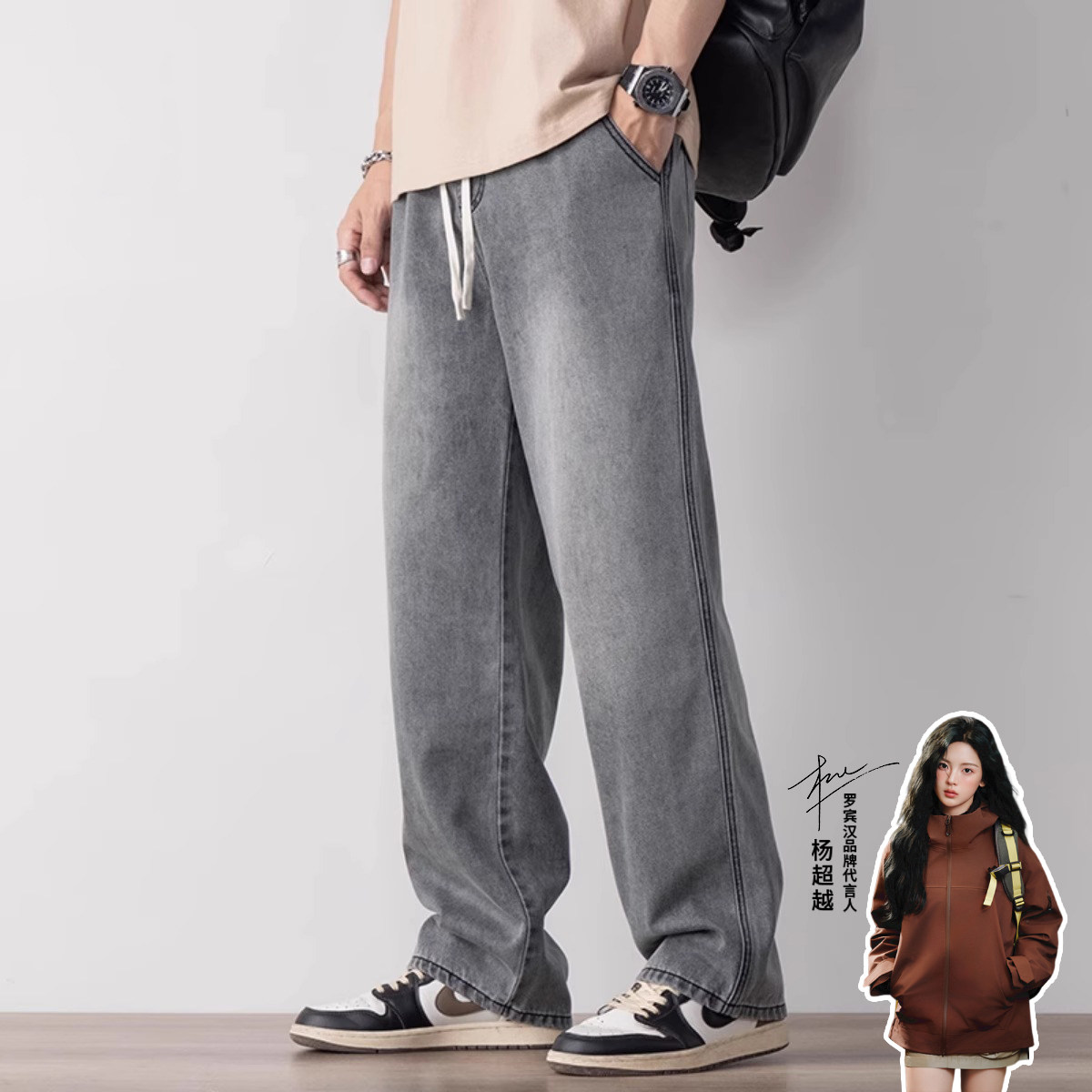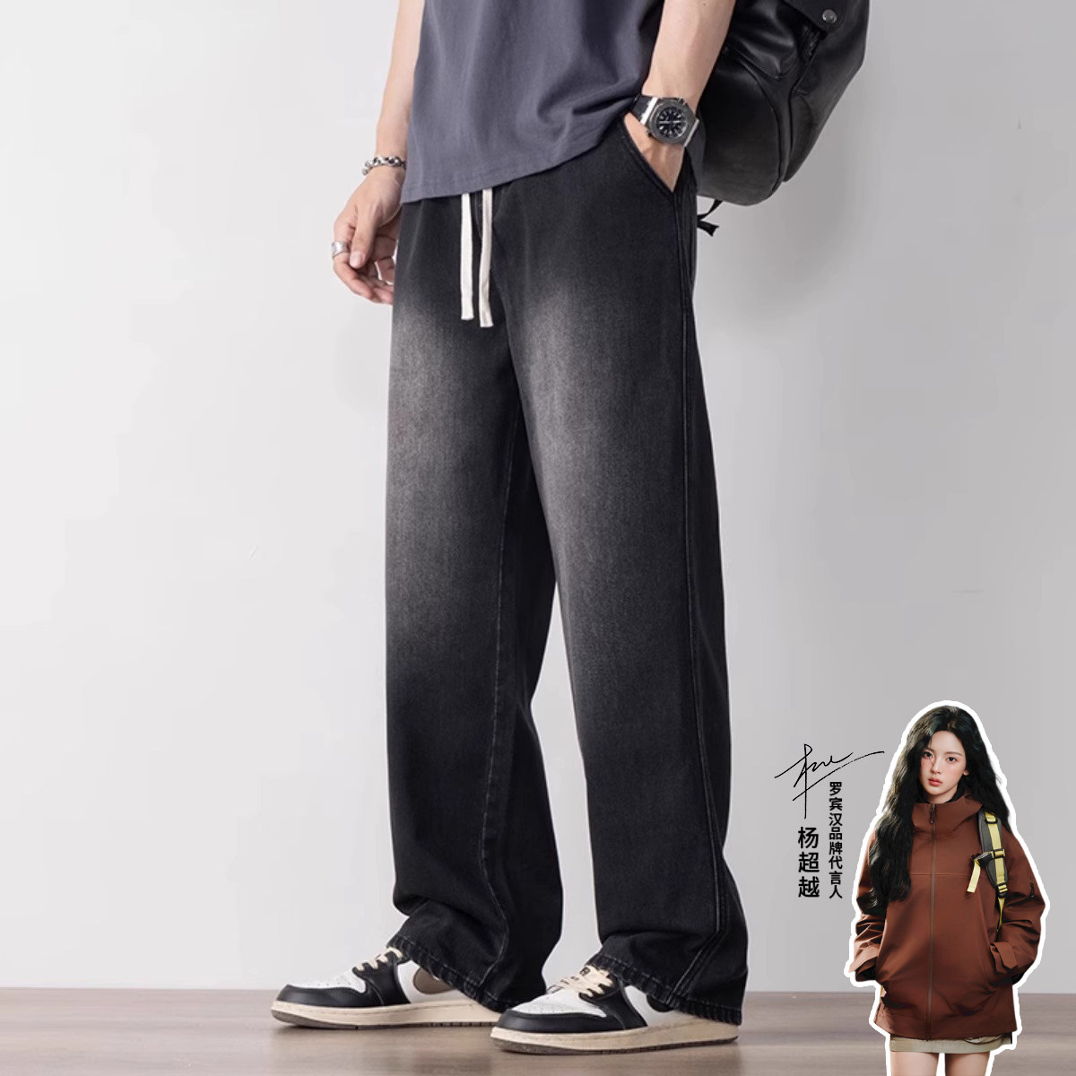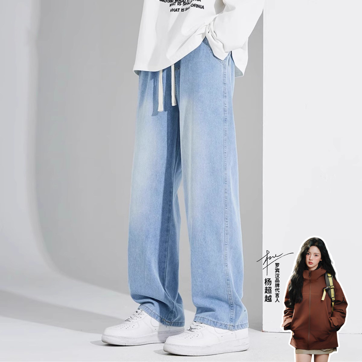 罗宾汉浅蓝色牛仔裤男款2025薄款夏季美式宽松直筒阔腿冰氧长裤子