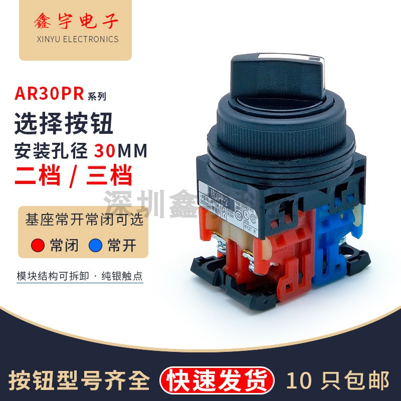 富士二档三档选择按钮开关AR30PR-211B 311B 210B自锁复位旋钮