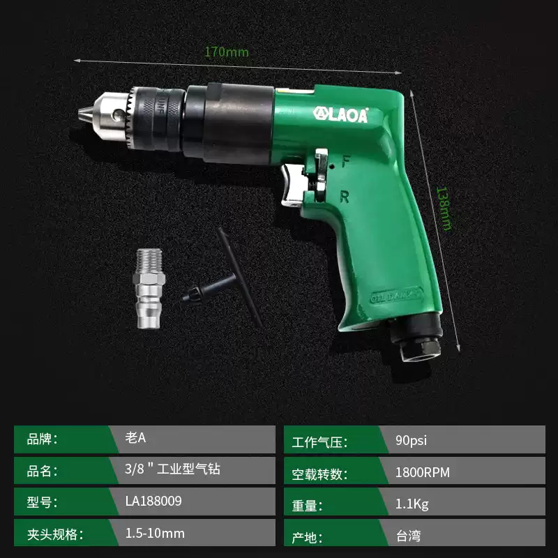 老A 台湾专业气钻气动攻丝机攻牙机手枪式风钻带正反转高速钻孔机