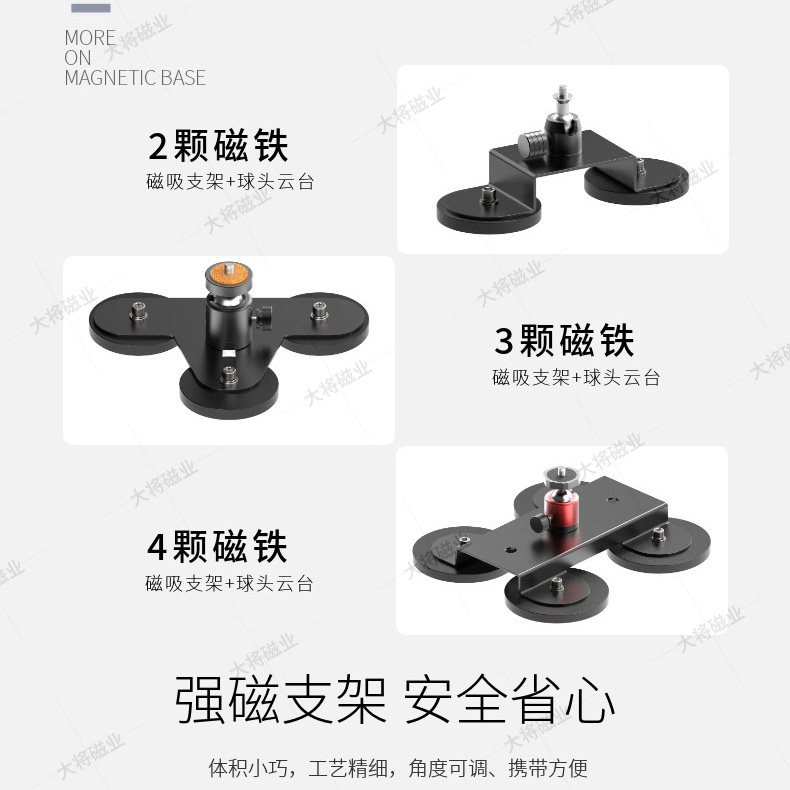 运动相机磁吸底座包胶强磁吸云台支架强磁吸盘固定车顶1/4螺纹