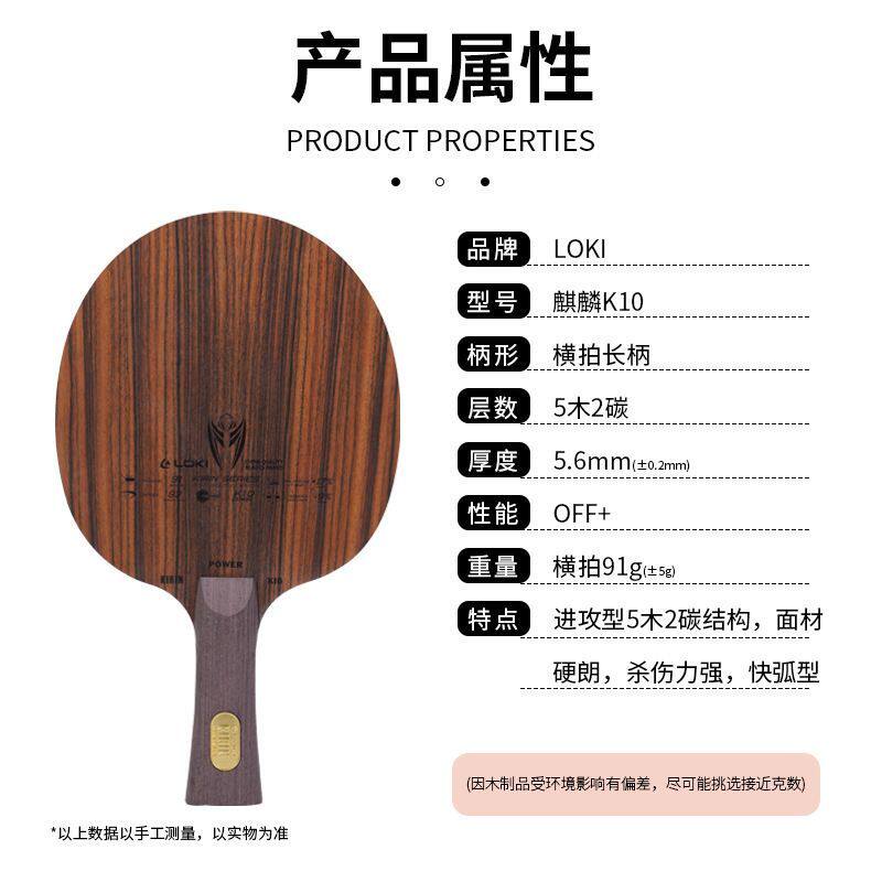 LOKI雷神麒麟K10乒乓球底板弧圈快攻玫瑰木面材阿尤斯芯原装正品