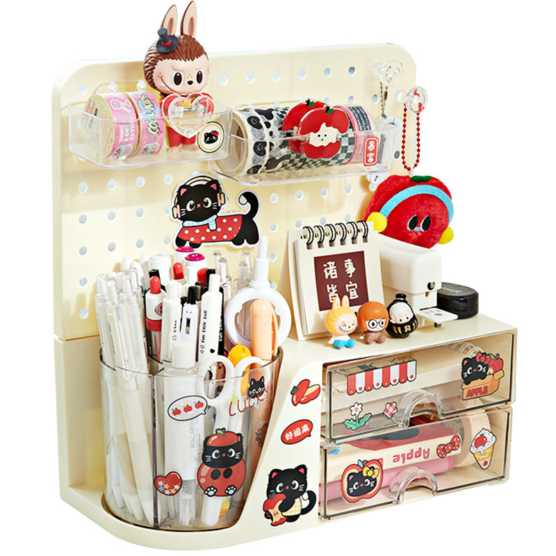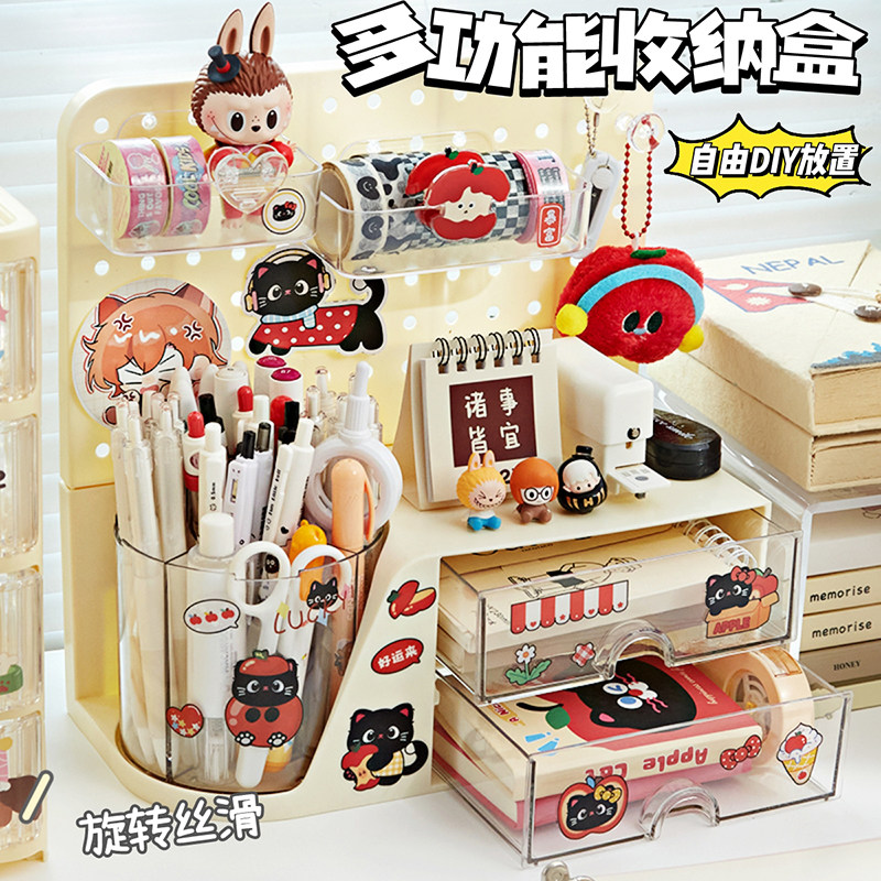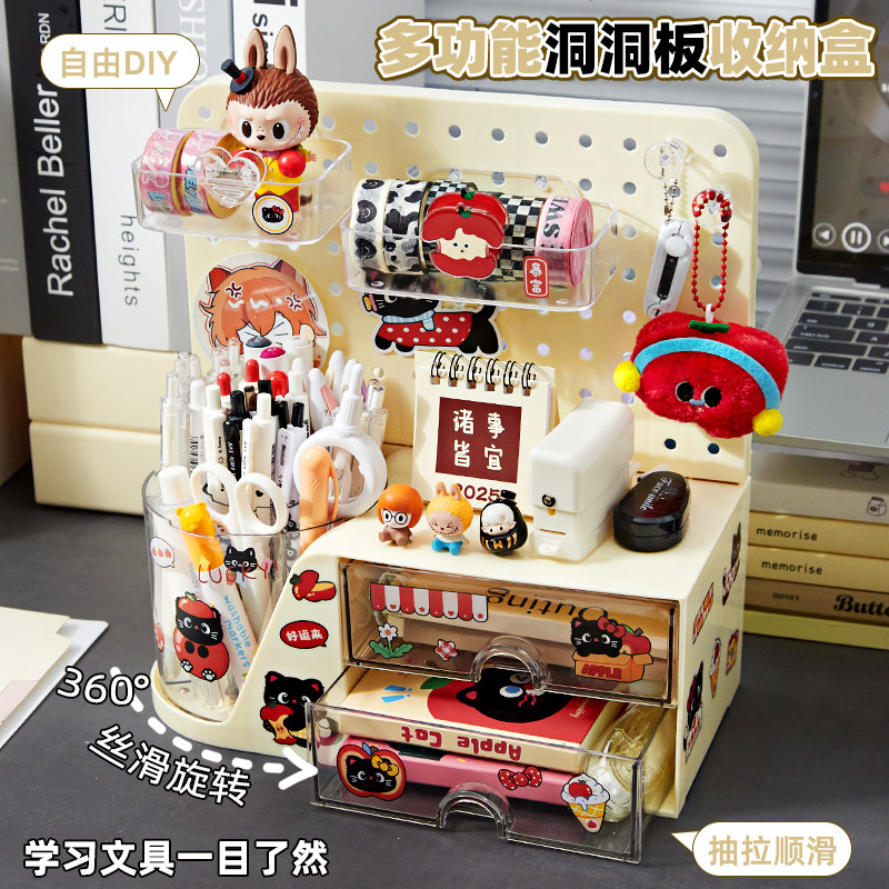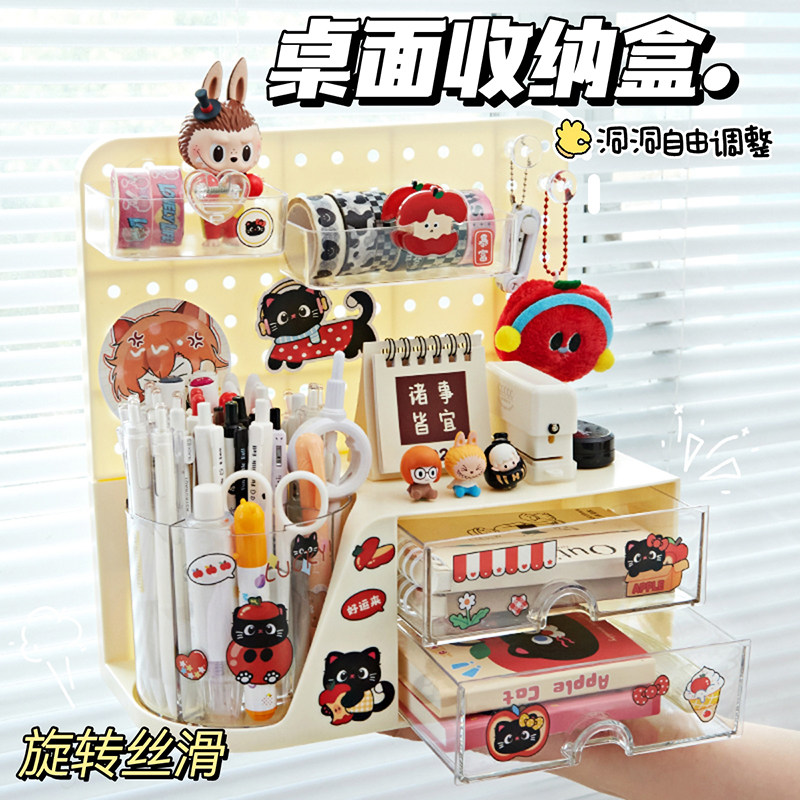 【洞洞板+笔筒收纳盒】小槑同学旋转笔筒大容量超大笔桶儿童女孩男孩高颜值学生桌面抽屉式置物架书桌多功能