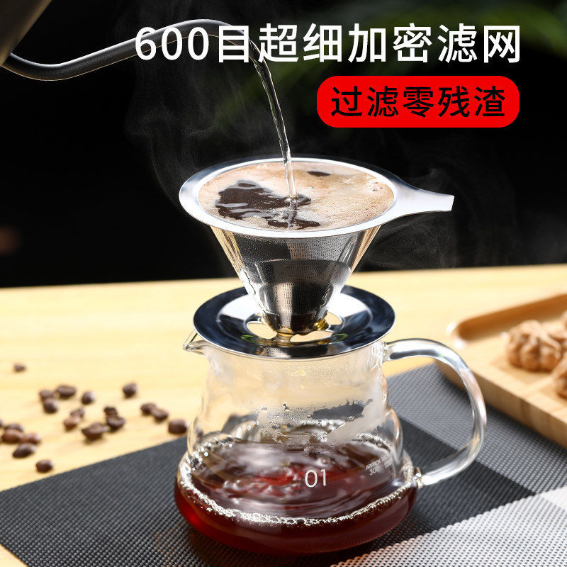 沃酱 咖啡过滤网双层手冲咖啡壶过滤杯器具套装滴漏式免滤纸漏斗手冲壶过滤器