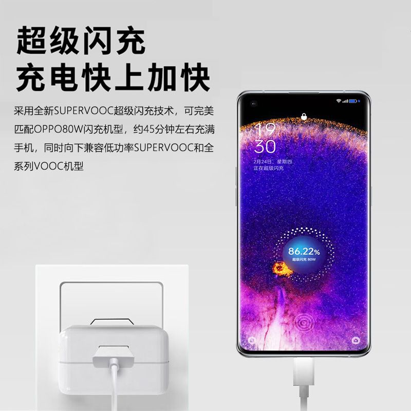 80W快充头适用OPPO充电器120w超级闪充原装reno7/8/9/11/12/13pro插头正品findx5/6Q真我GTNeo3k10手机数据线