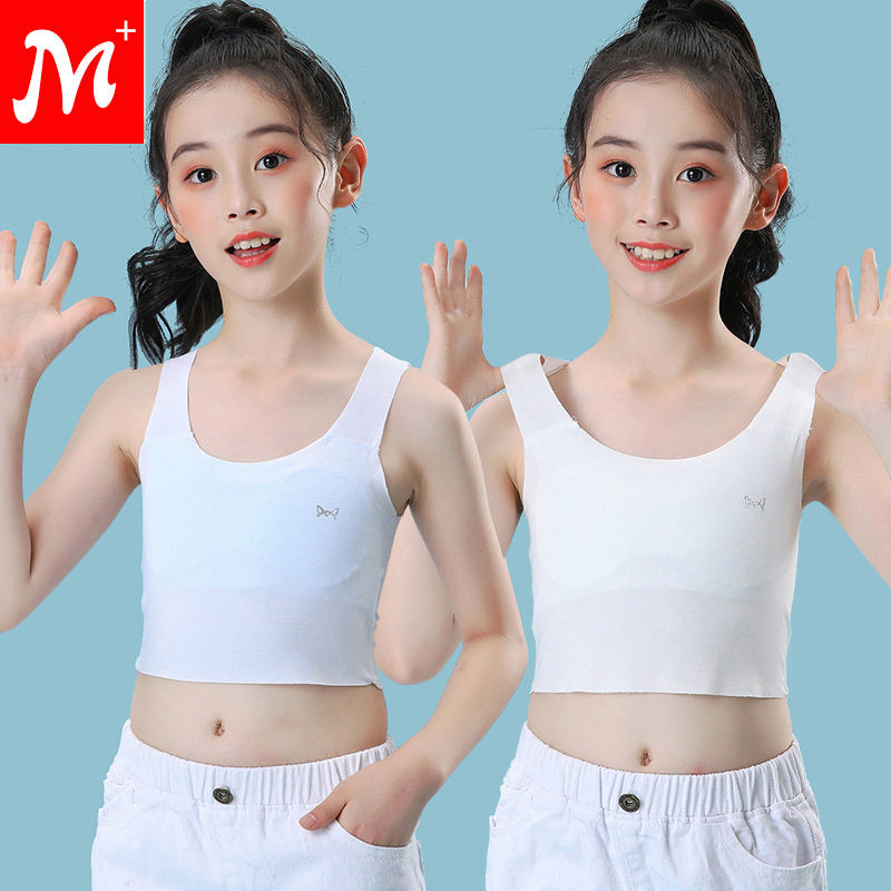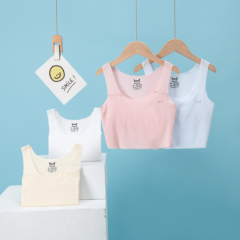 童发育期夏季薄款可爱运动背心双护垫初中学生休闲内衣女冰丝无痕