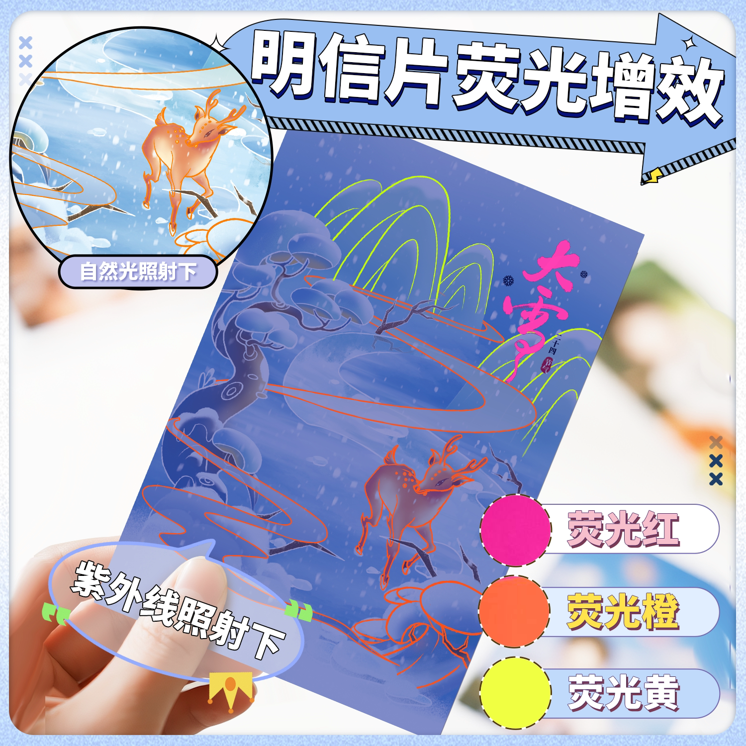 沉墨荧光明信片来图定制烫金高级感双面自印二次元印刷照片diy特种纸防伪工艺高清动漫明星周边物料打印厚卡