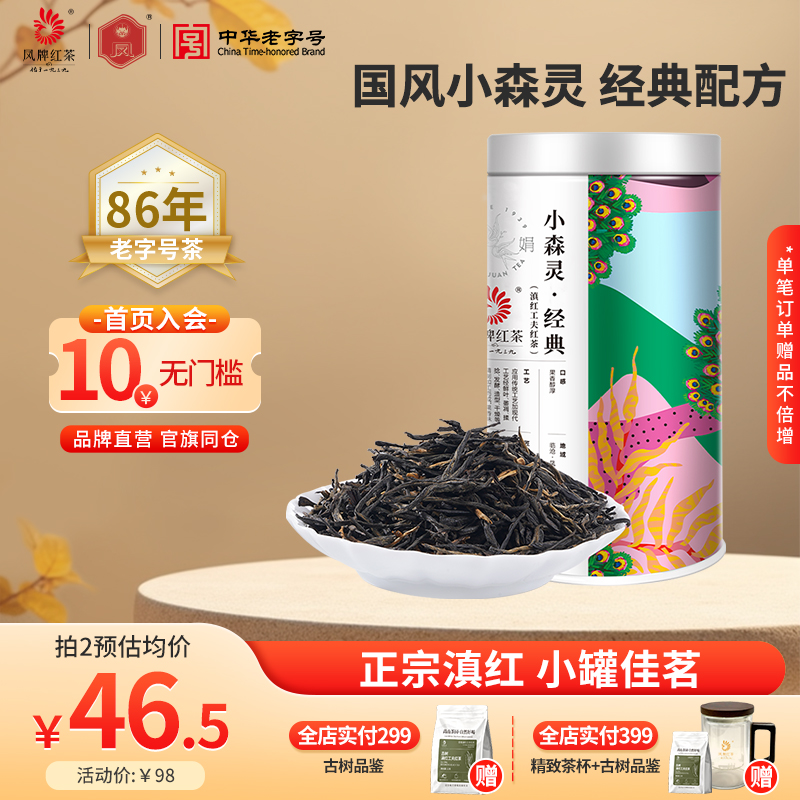 凤牌红茶 滇红茶特级云南小森灵经典50g罐装云南凤庆滇红茶叶红茶