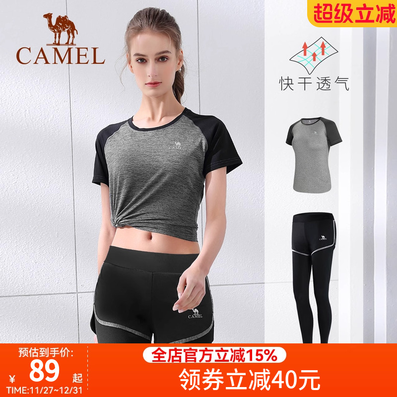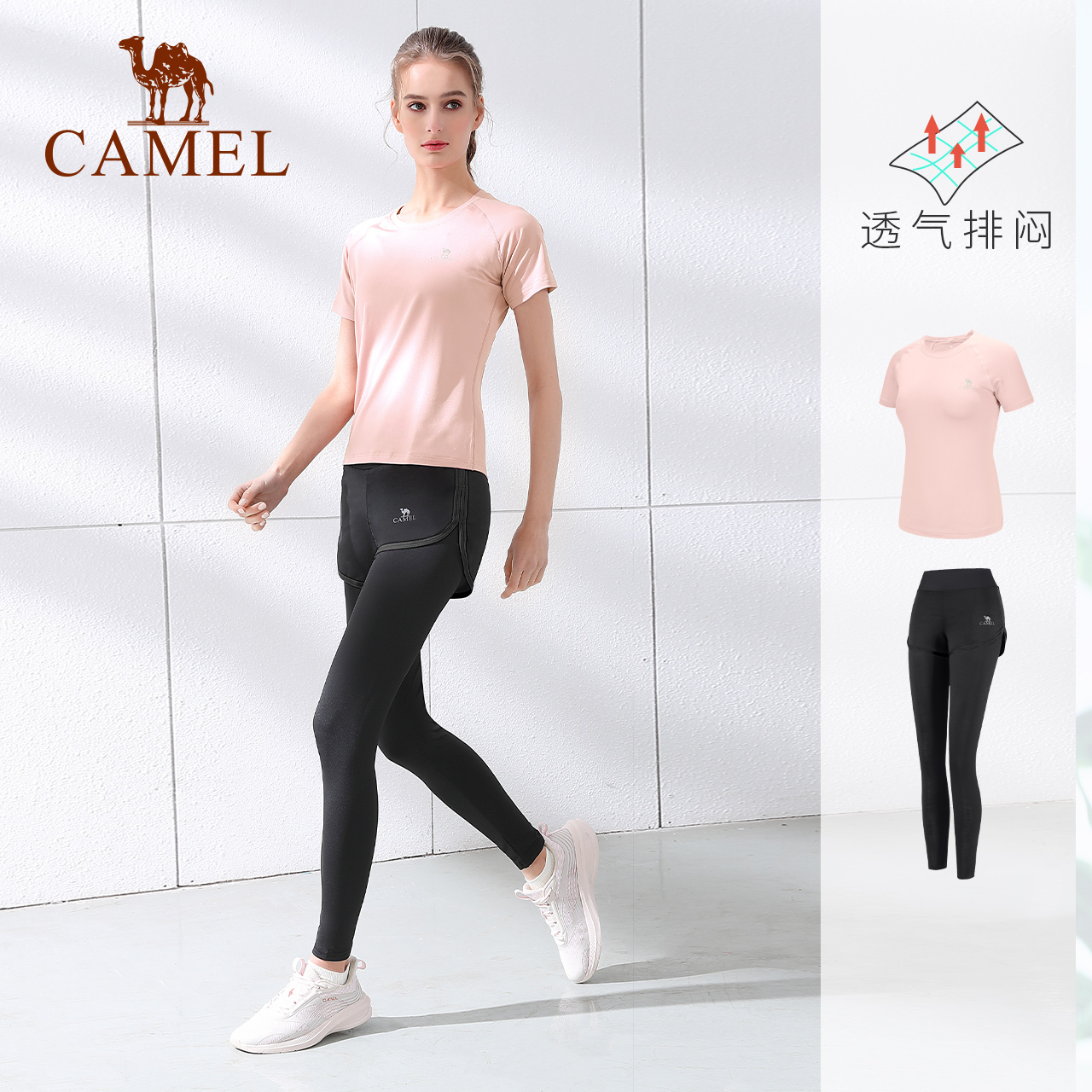 骆驼瑜伽套装女夏季薄款透气休闲运动服装晨跑修身显瘦健身两件套