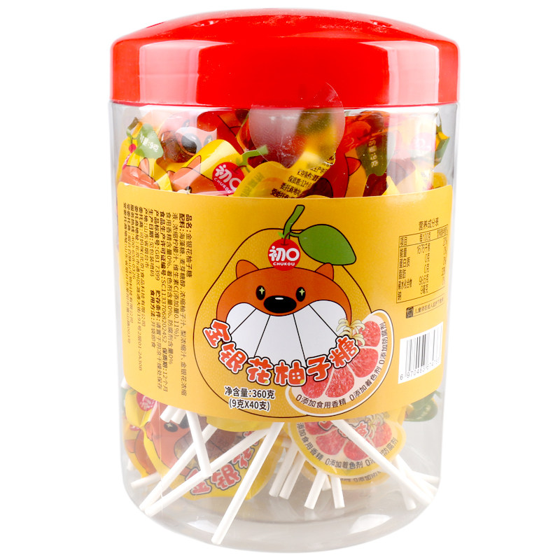 初口金银花柚子糖9克*40支独立包装儿童棒棒糖果休闲食品零食硬糖
