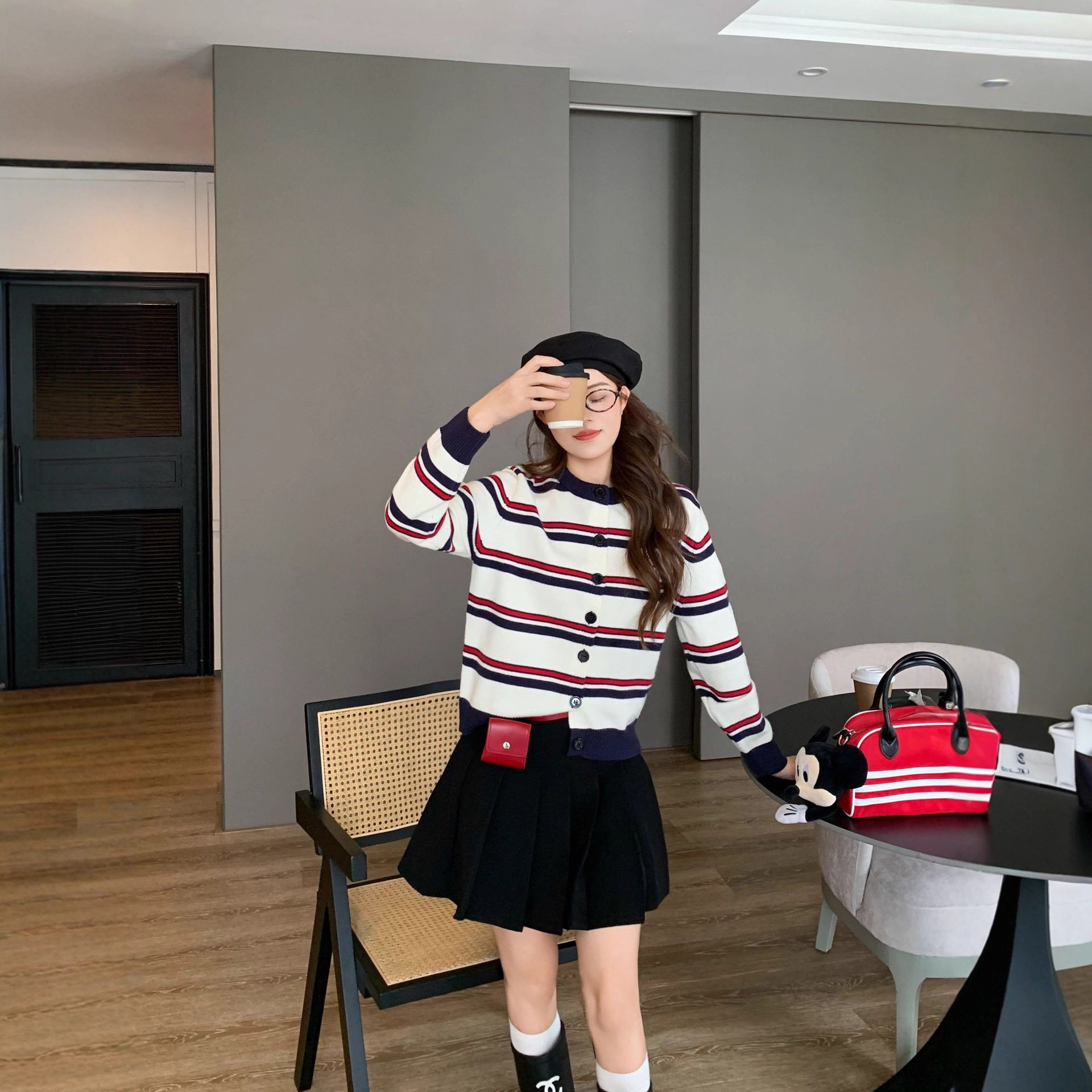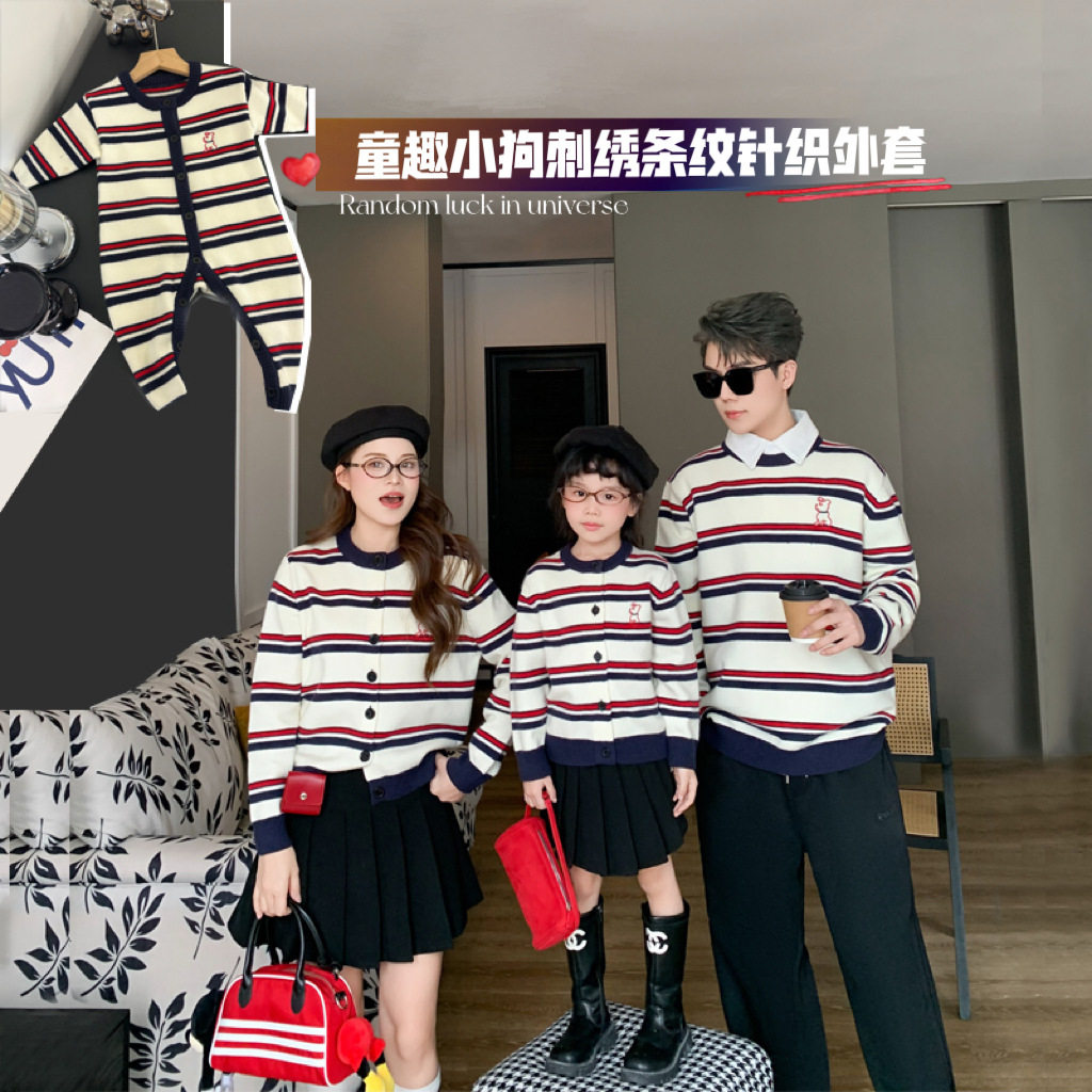 韩版秋冬亲子装毛衣一家三口母女婴儿卡通小熊条纹针织衫过年童装