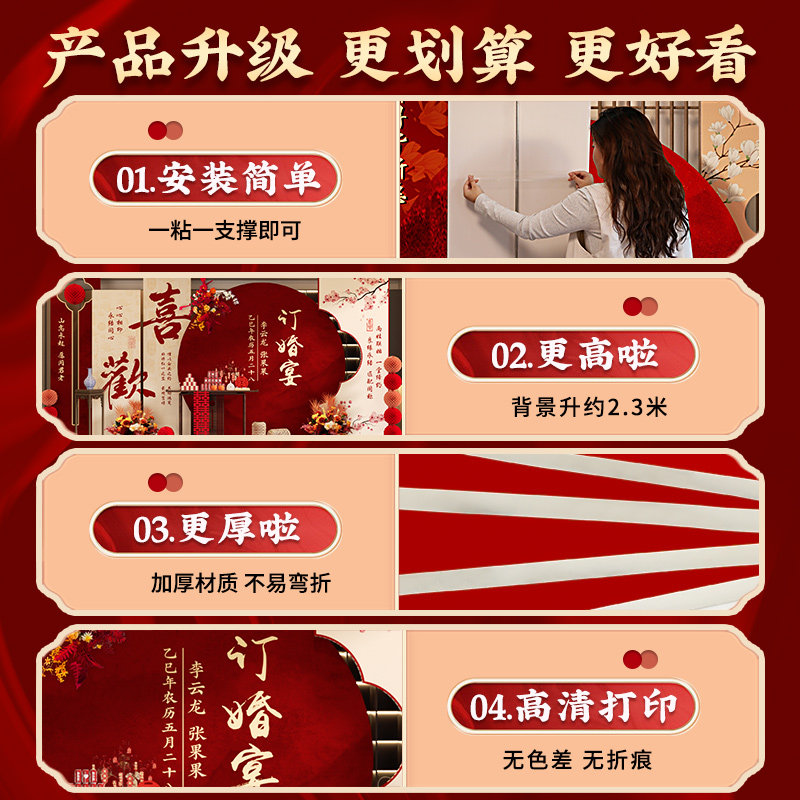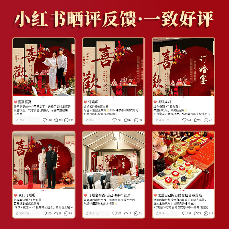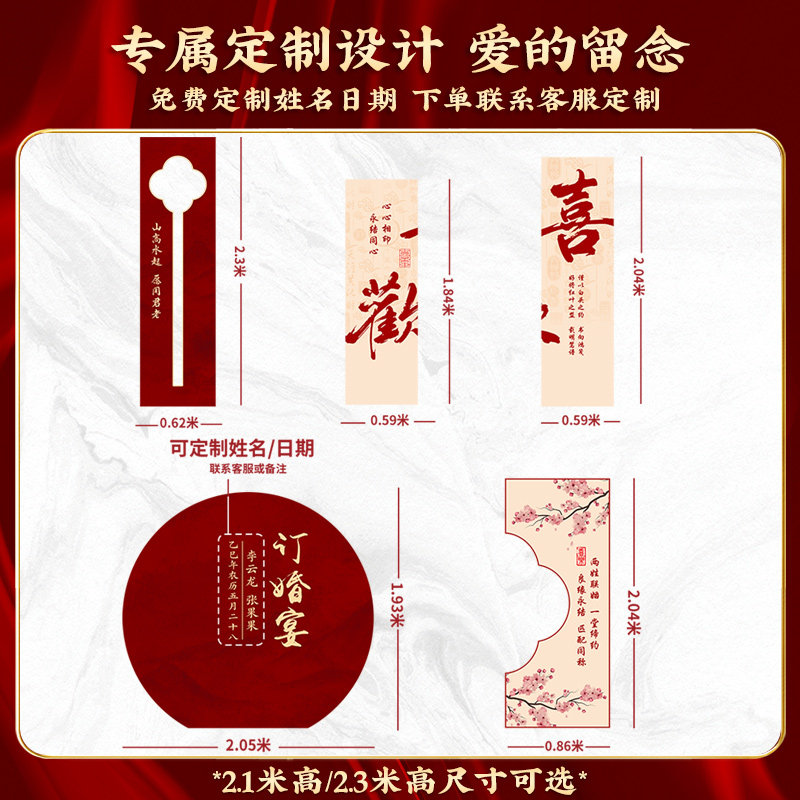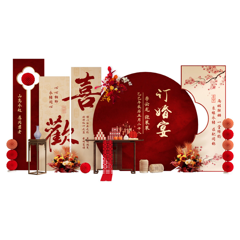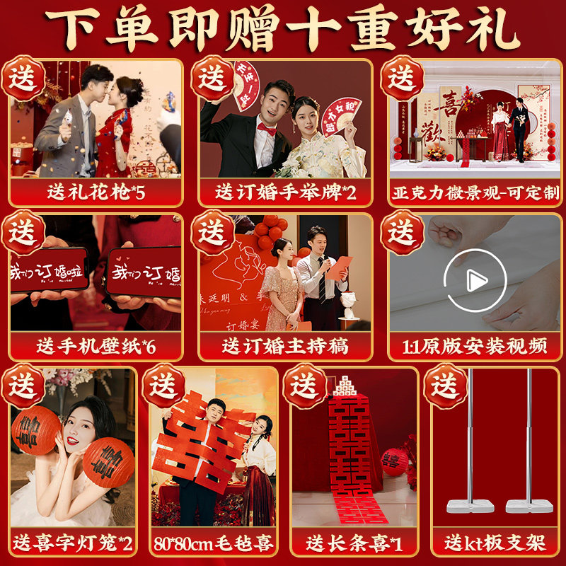 2026订婚宴场景布置装饰新中式喜字摆件全套餐摆台kt板定制背景墙