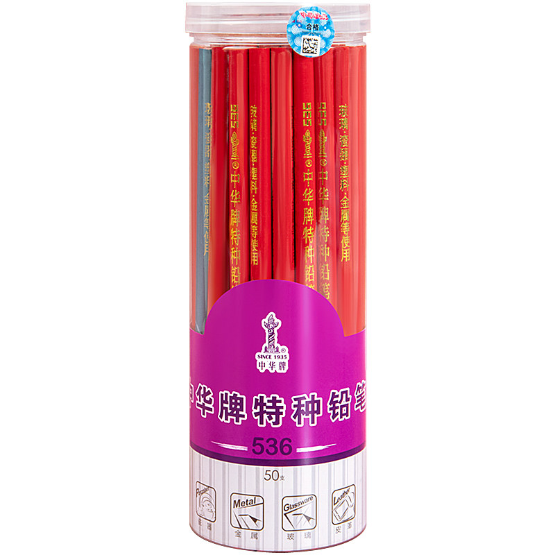 中华牌特种铅笔5.36圆杆红黄蓝白黑玻璃瓷器划线标记画金属木工专用加粗石墨特制记号铅笔炭画塑料眉眼线画笔