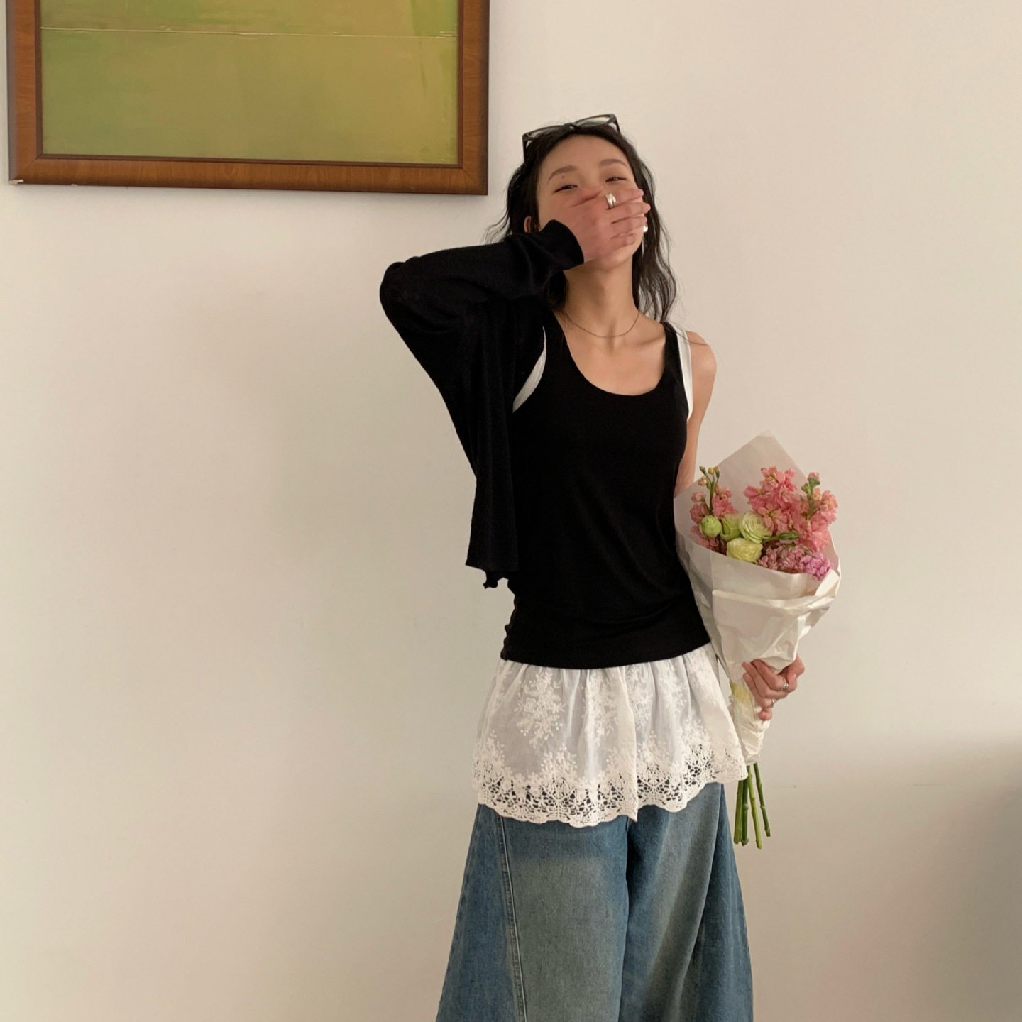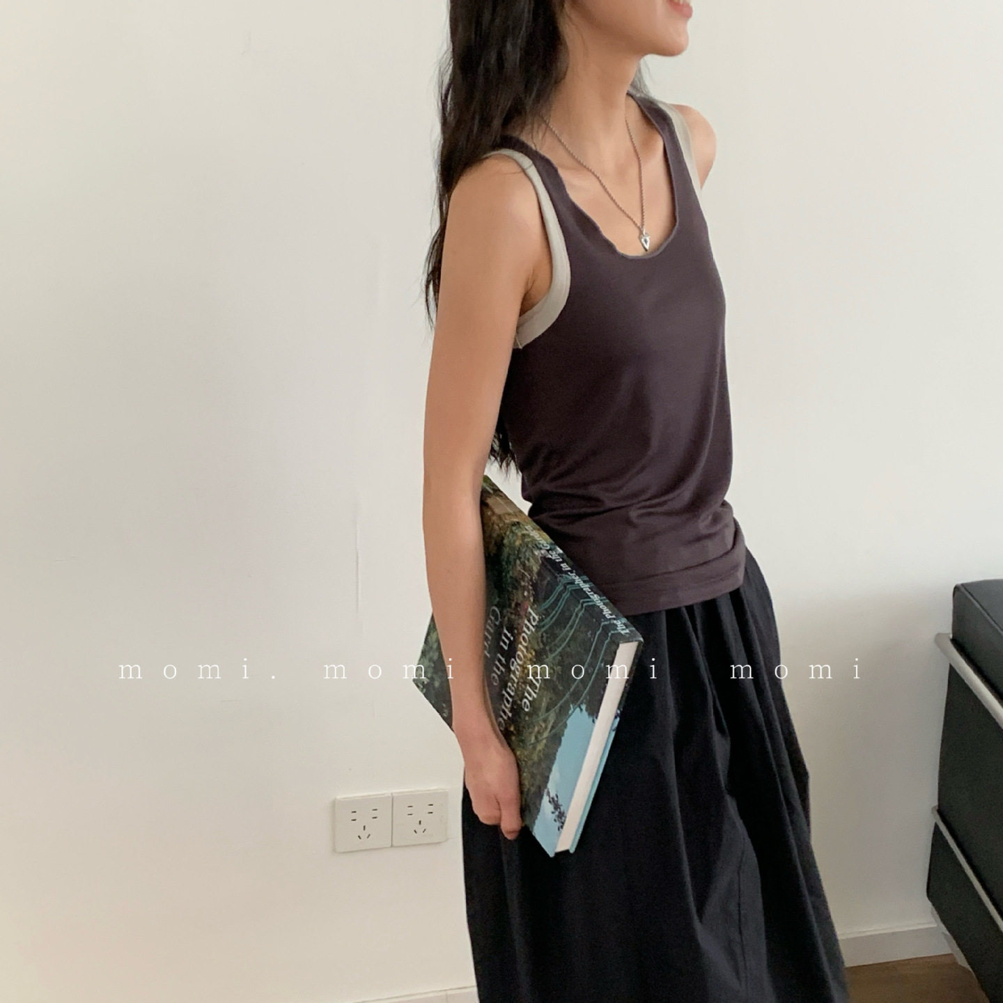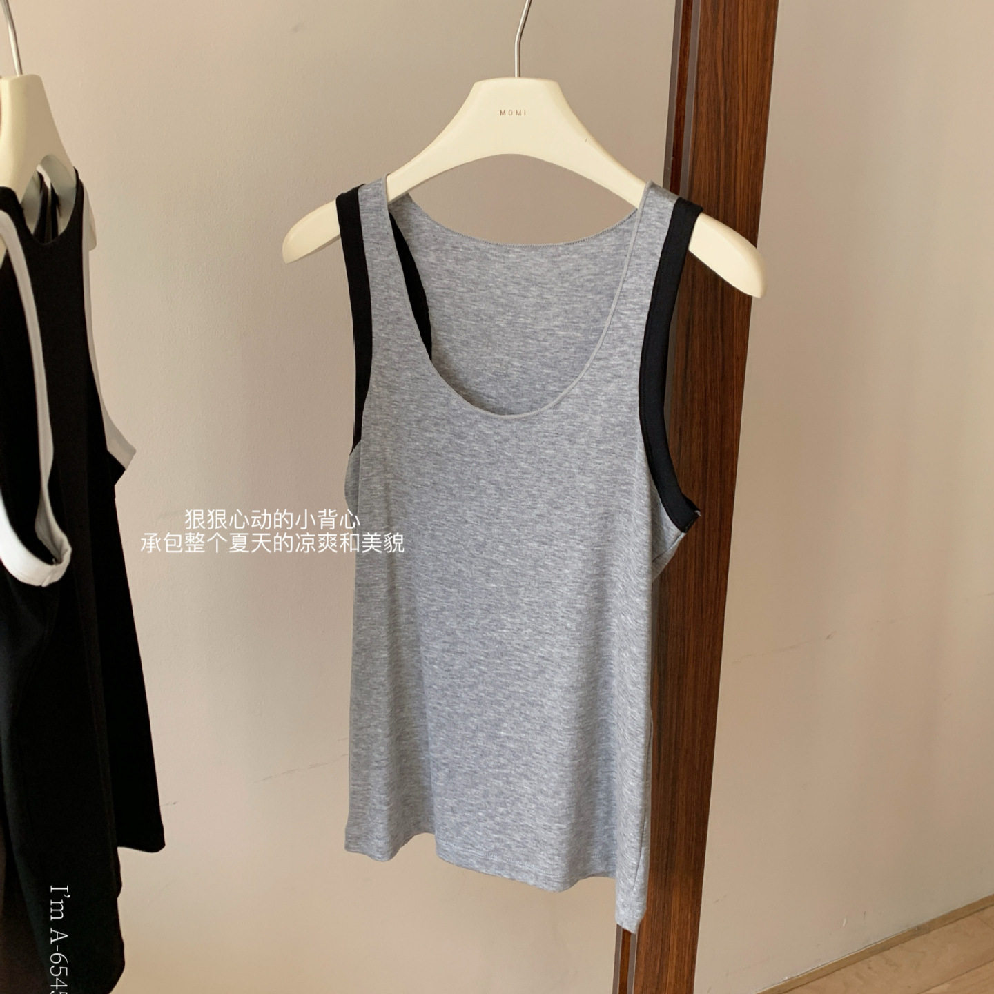 韩系辣妹撞色假两件背心女士新款修身显瘦气质叠穿内搭吊带可外穿