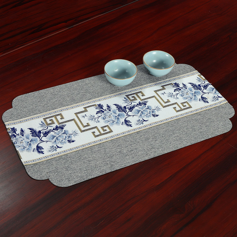 中式桌旗简约干泡小茶席禅意茶桌垫布茶巾布垫子茶道茶杯隔热垫布