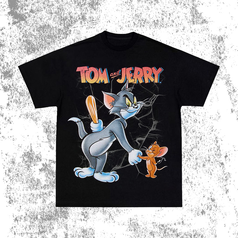 tom and jerry vintage猫和老鼠短袖卡通嘻哈宽松情侣圆领国潮T恤