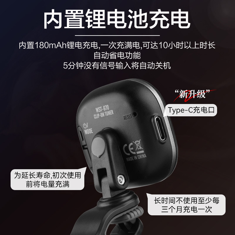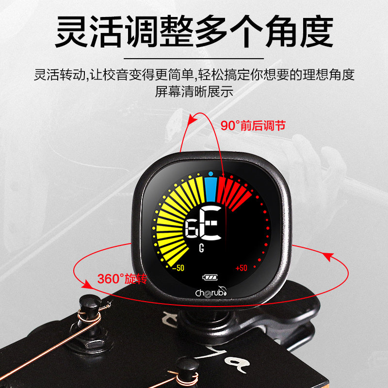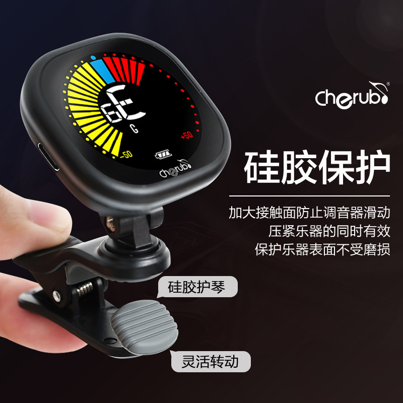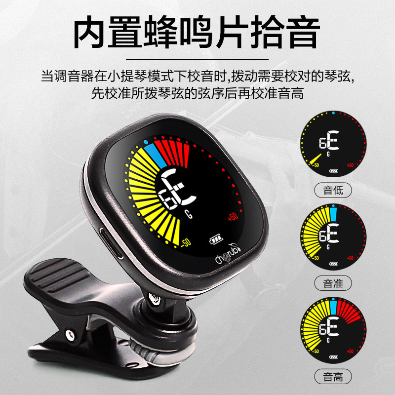 Cherub小天使民谣吉他电子调音器可充电尤克里里小提琴夹式校音器