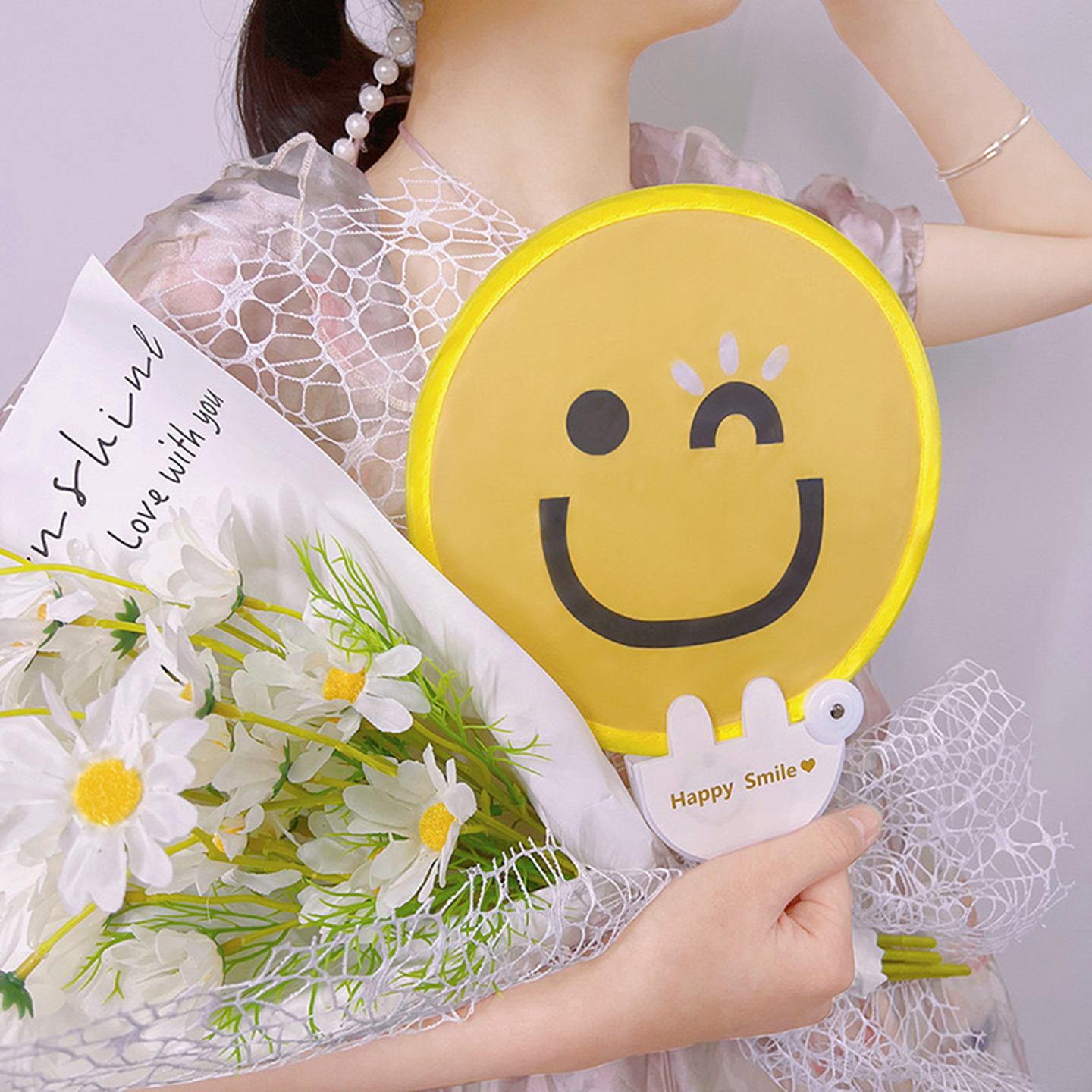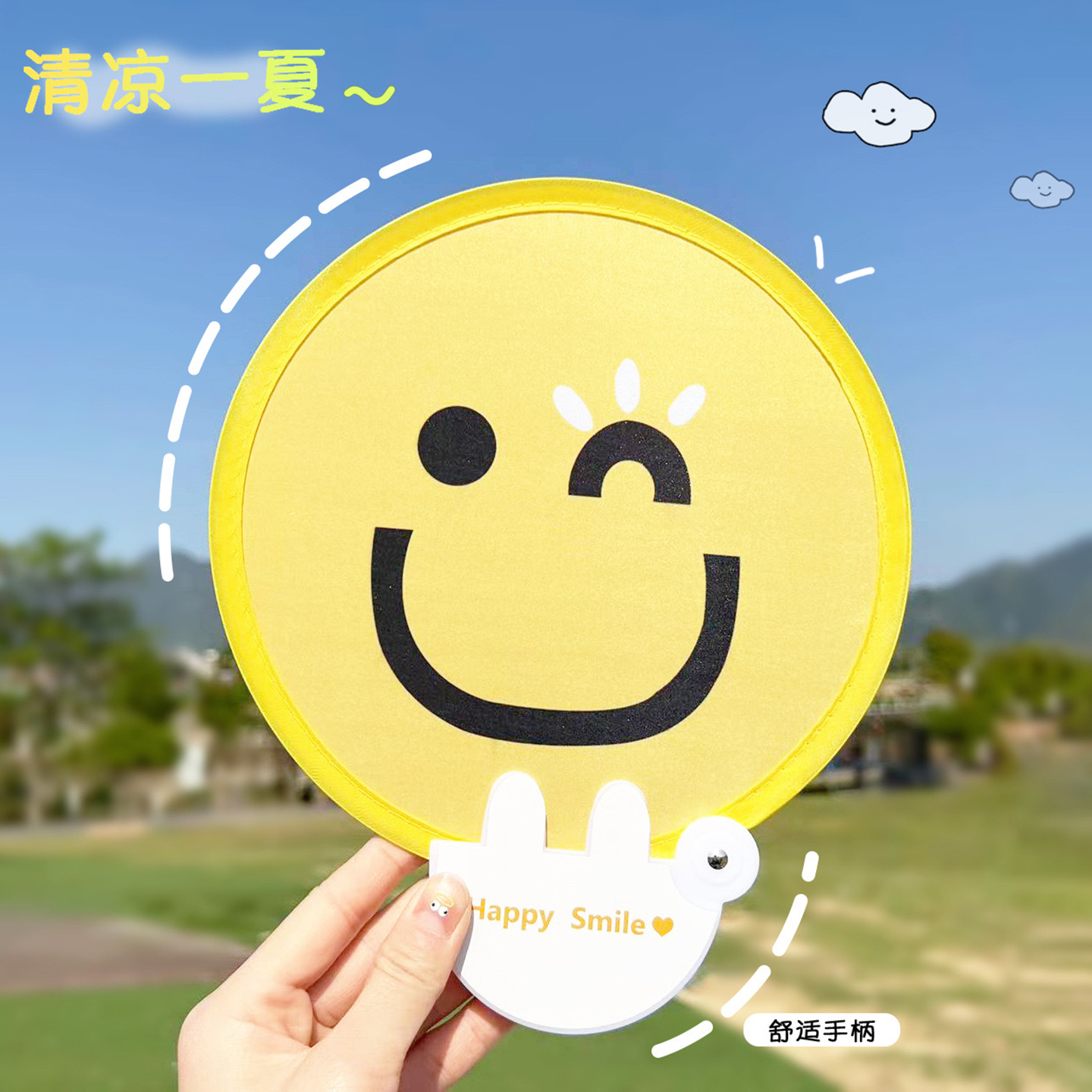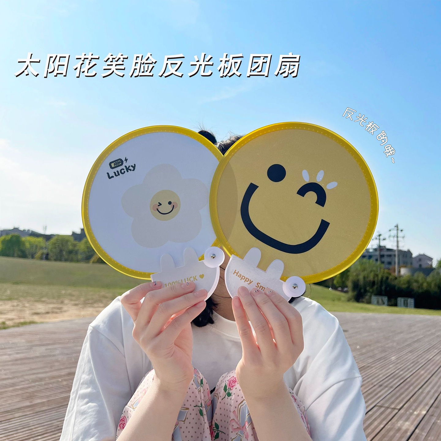 可爱笑脸折叠团扇反光板拍照便携户外手持圆扇夏季清爽迷你扇子