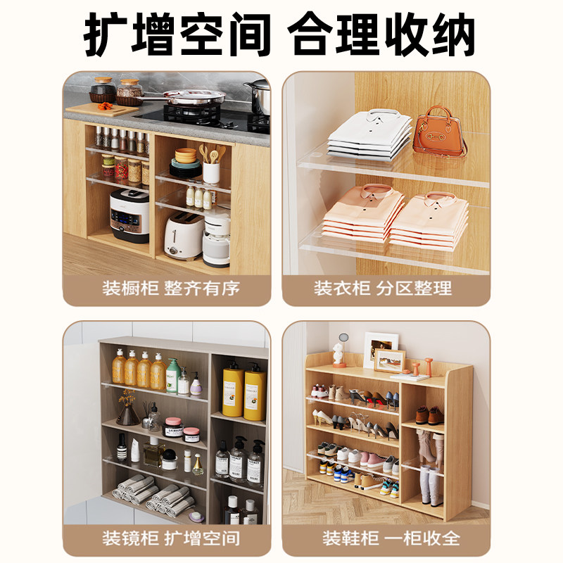 定制亚克力隔板鞋柜子分层架置物宿舍衣柜隔断板书橱深柜改造神器