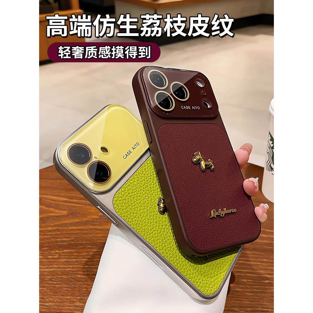 2026马年适用iphone17promax手机壳苹果16promax新款带镜头膜15pro高级红色皮纹14相机键全包13好看轻奢外壳