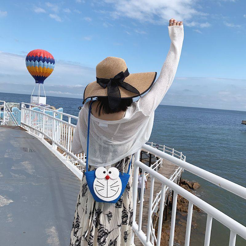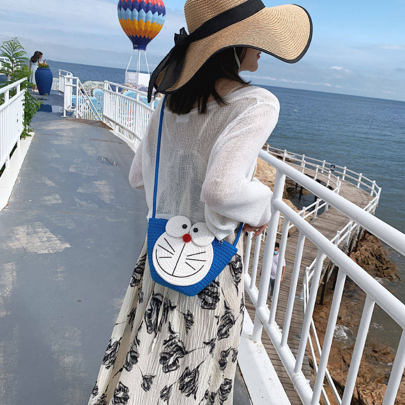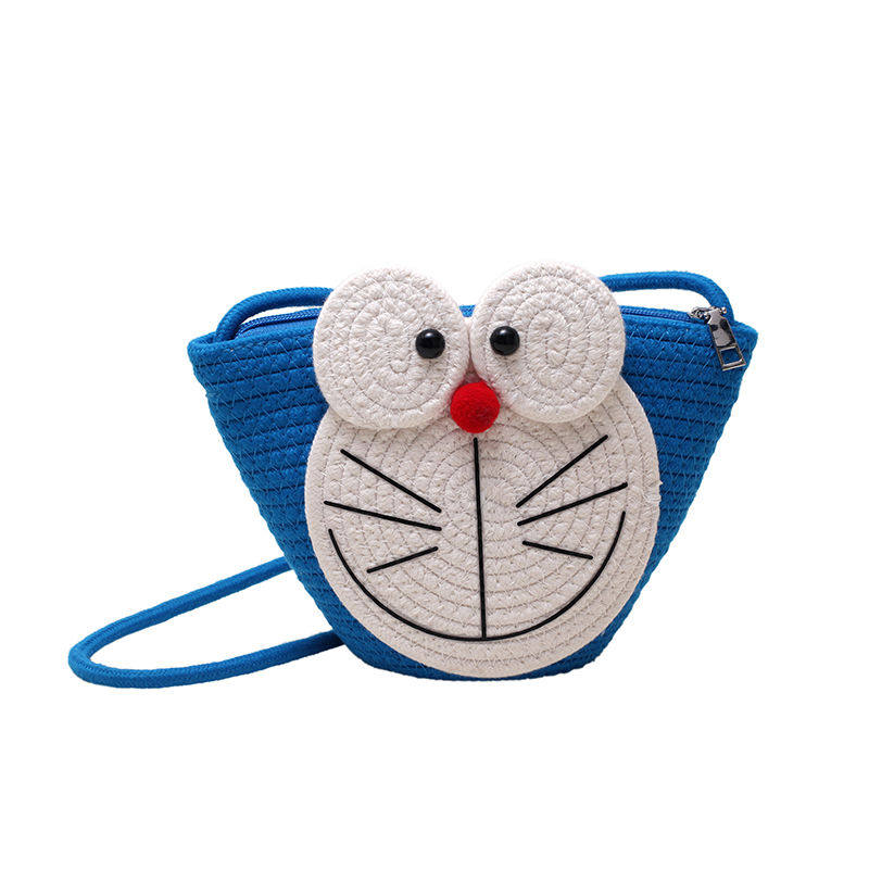 可爱卡通夏天包包女2023新款潮ins丑萌单肩水桶包小众斜挎编织包