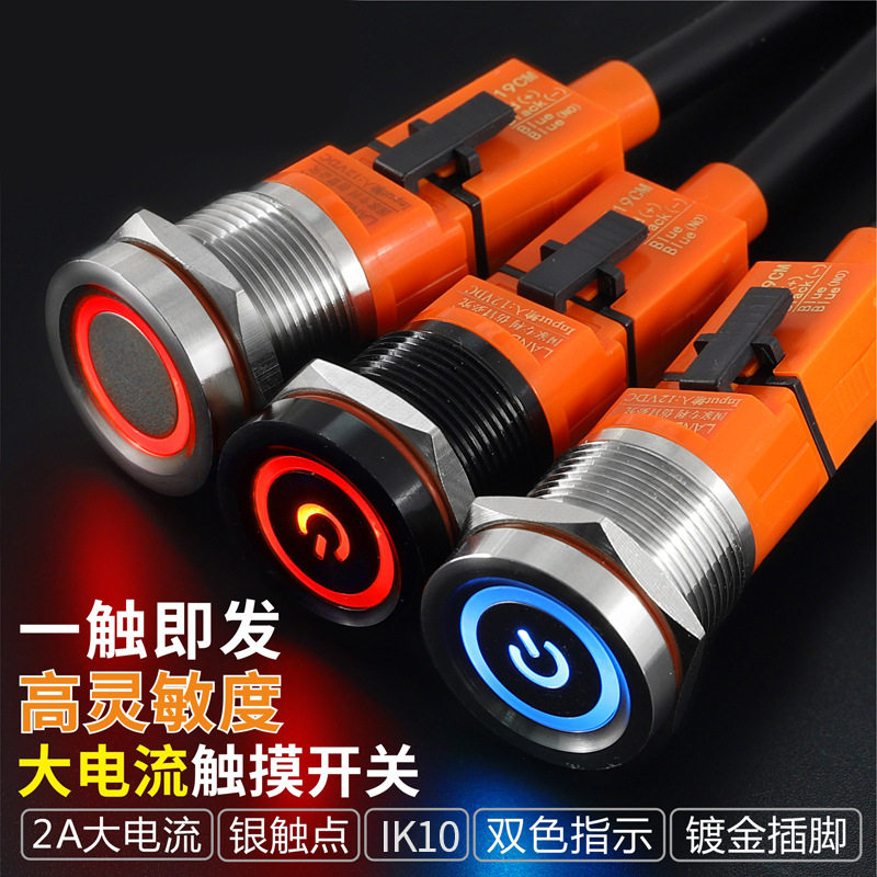 发19CM系列触摸自锁复位12V24V防水IP65红蓝双色开关