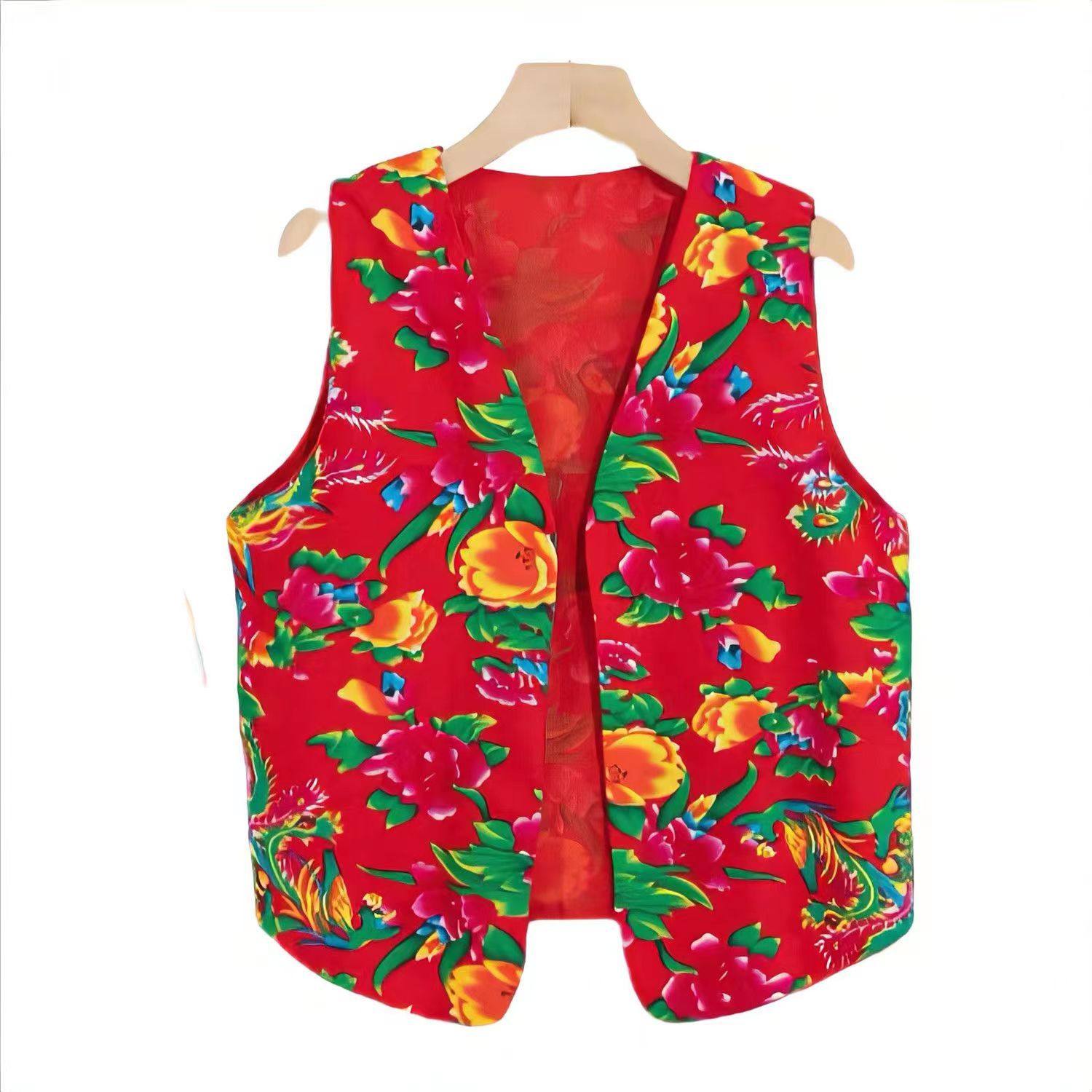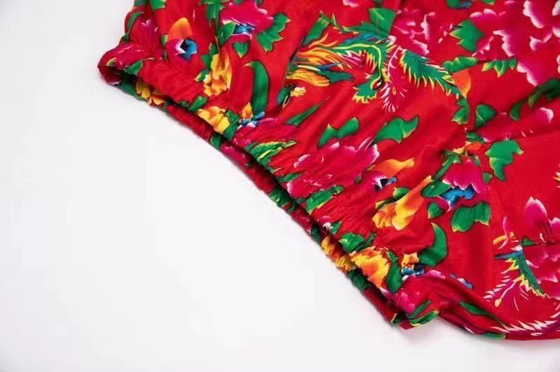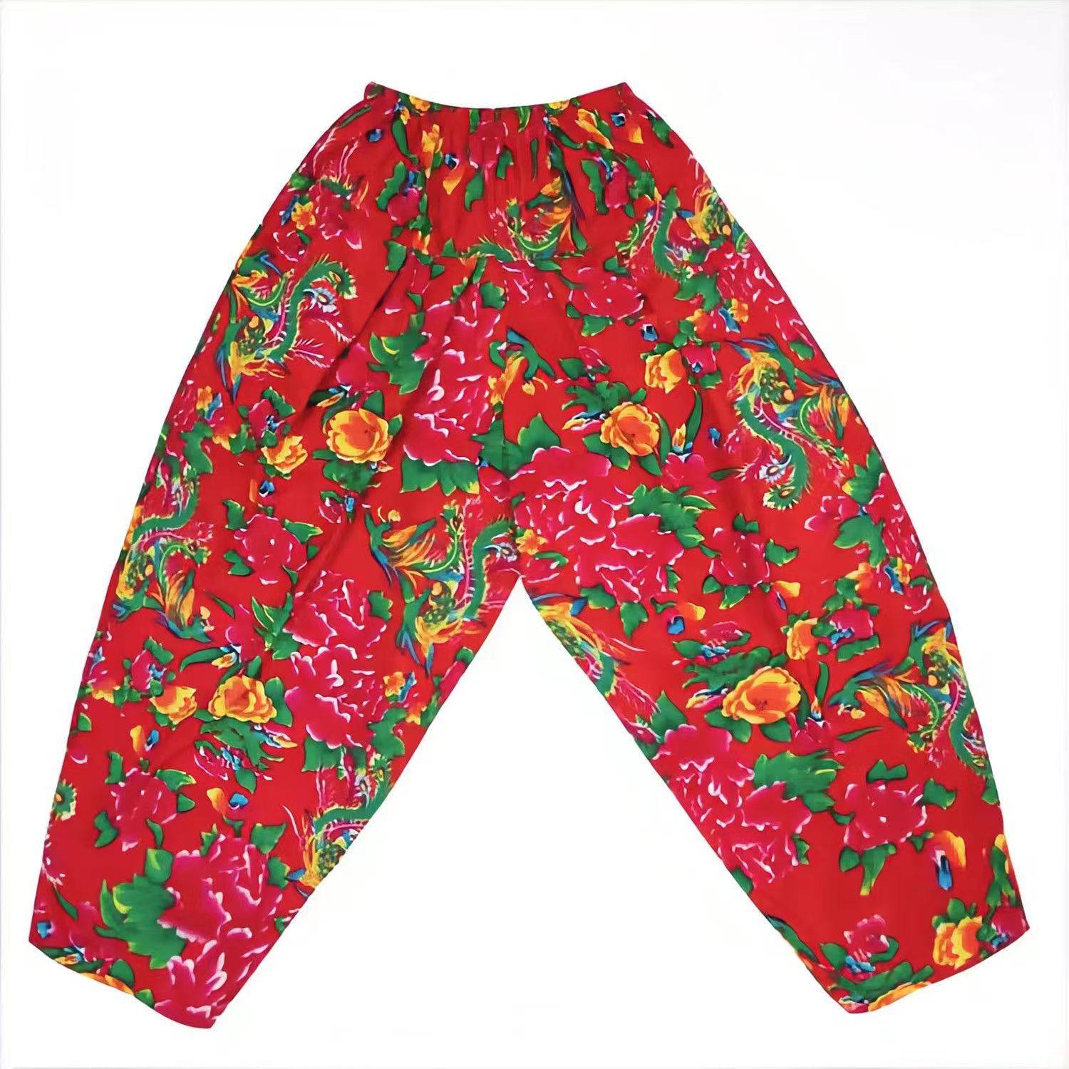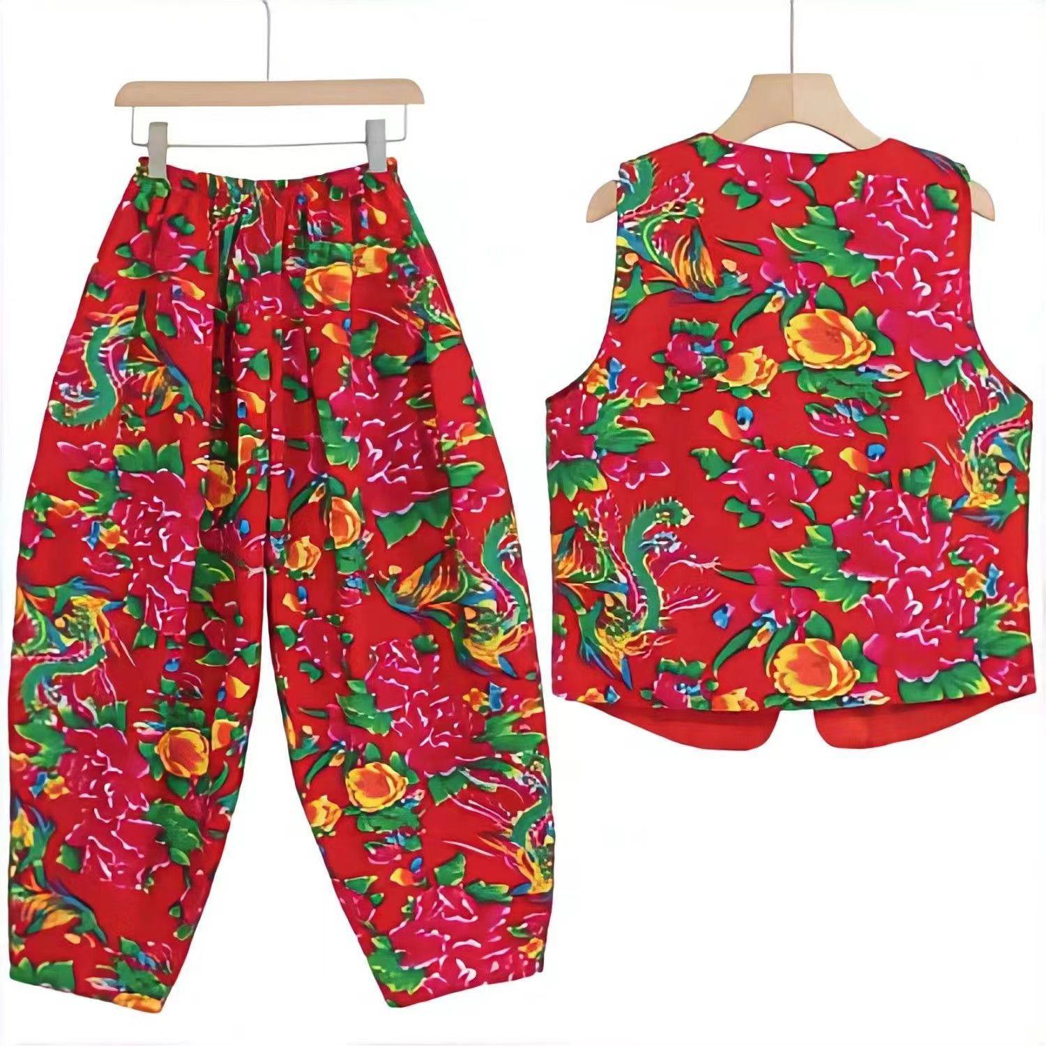 抖音从小卖蒸馍东北大花布马甲灯笼裤套装秧歌服广场舞二人转服饰