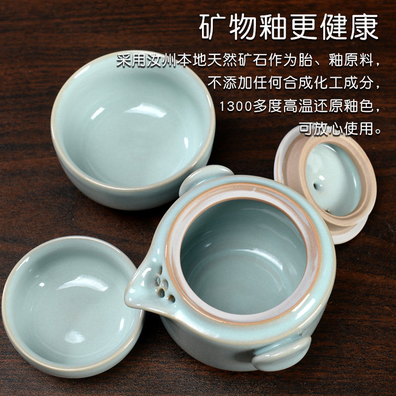 汝窑快客杯一壶一杯子二杯旅行便携式茶具套装随身户外泡茶一人饮