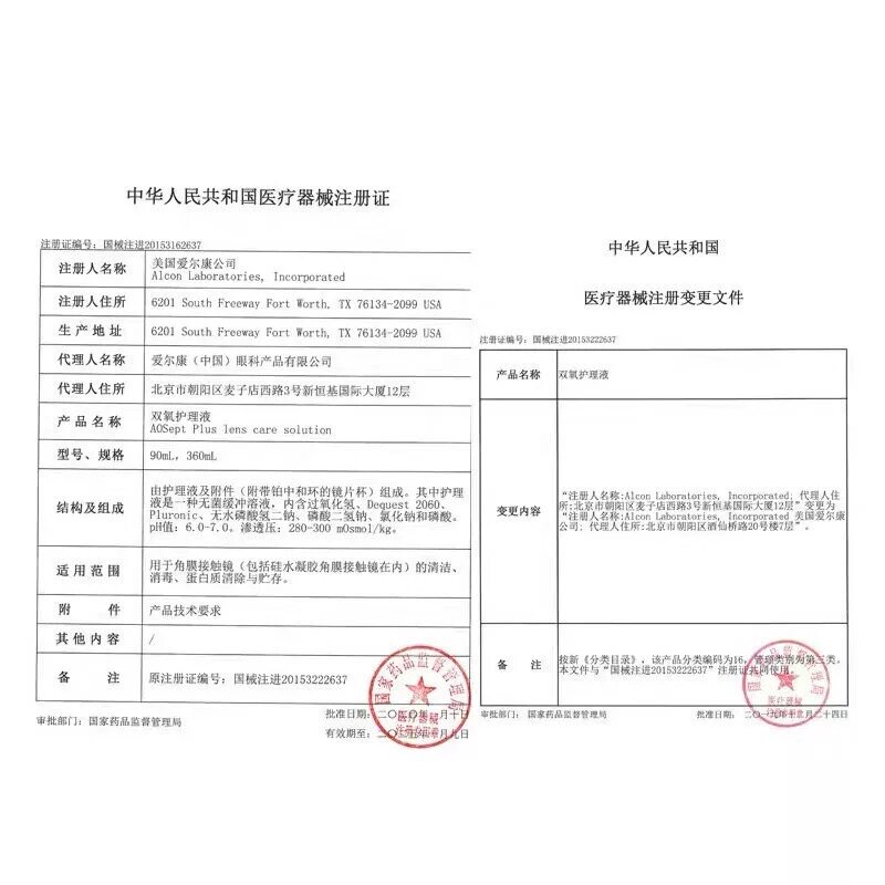爱尔康蓝澈双氧水护理液OK镜角膜塑性镜硬性隐形眼镜除蛋白360ml