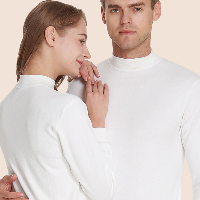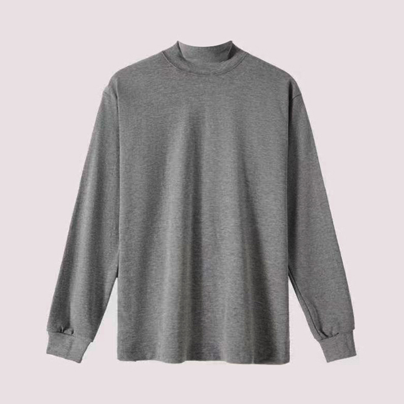 纯棉半高领睡衣女上装微宽松显瘦长袖纯色简约家居服内衣打底衫