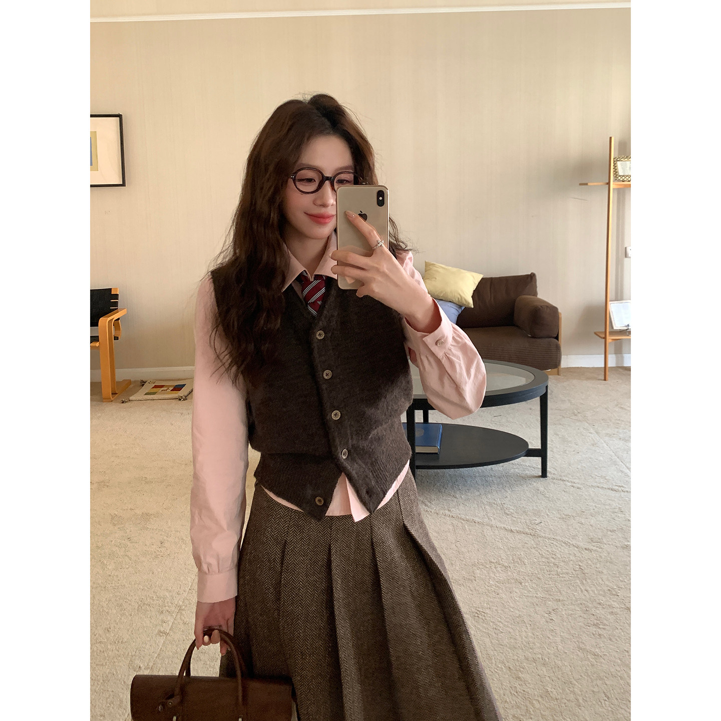 Even一雯【博主叠搭】韩系高智感含羊毛棕色日常叠穿单品马甲背心