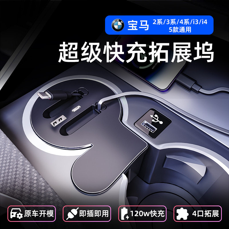 适用宝马2系3系4系I314车载拓展坞USB充电器TYPE-C多功能120W快充