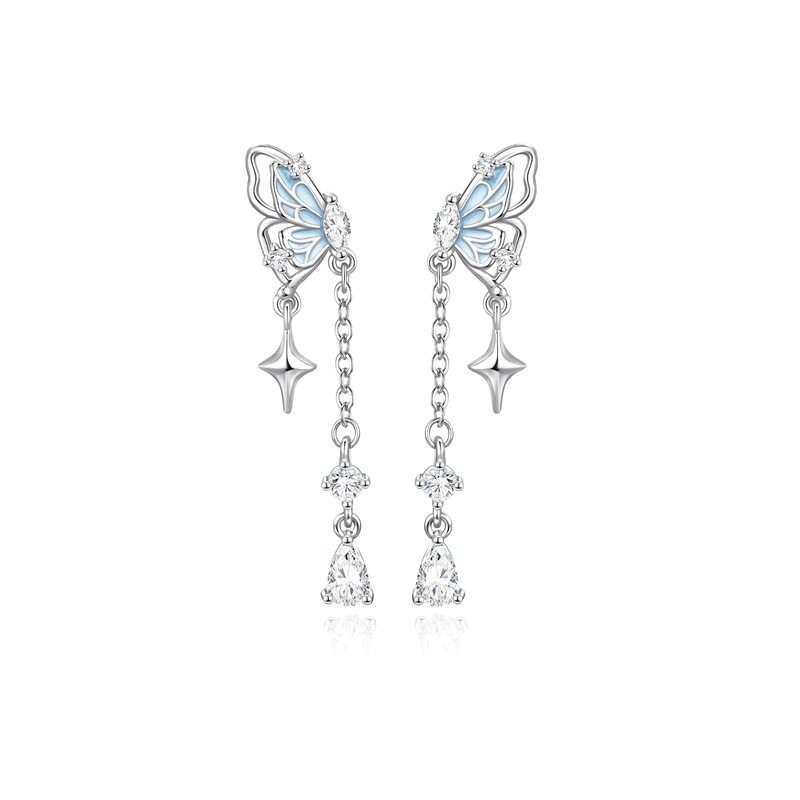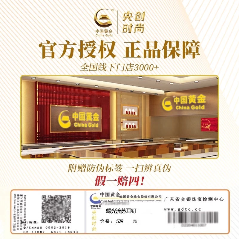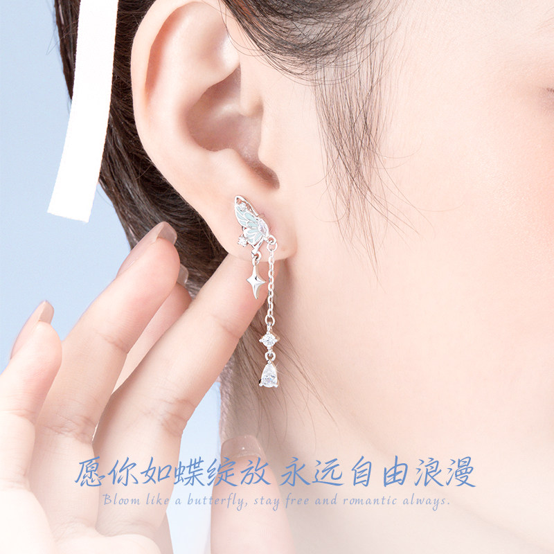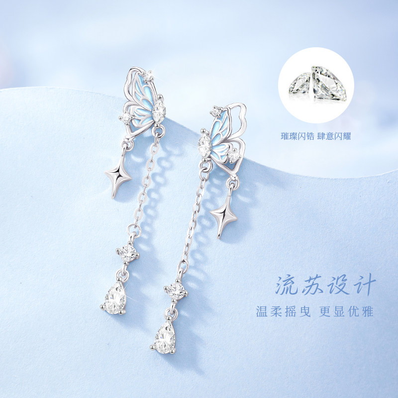 中国黄金央创纯银蝴蝶耳钉女2026爆款流苏耳饰生日礼物送女友S925