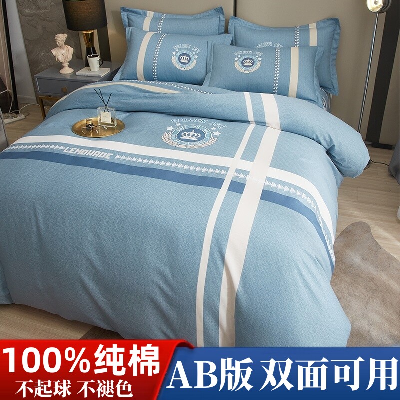 高档纯棉四件套全棉100%床单被套床笠款学生宿舍三件套床上用品4
