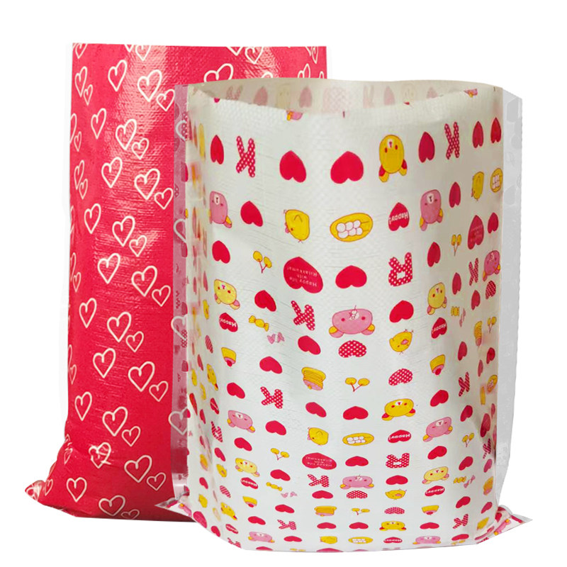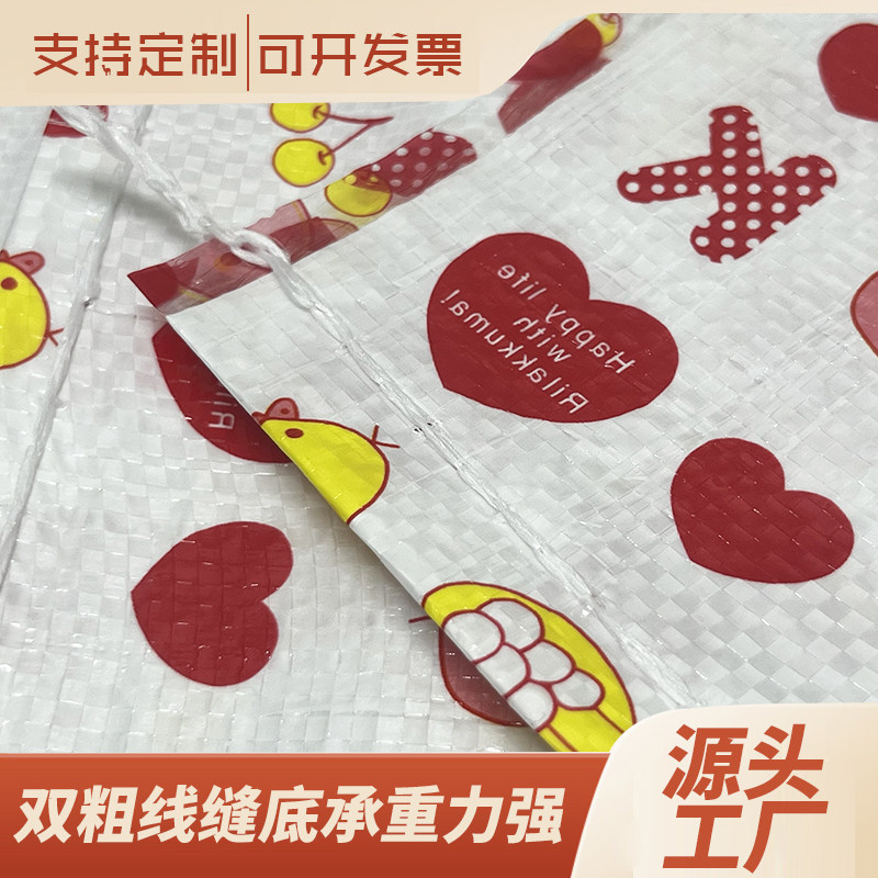 覆膜防水卡通红心毛绒玩具包装袋大号双层编织袋彩色礼品袋包裹袋