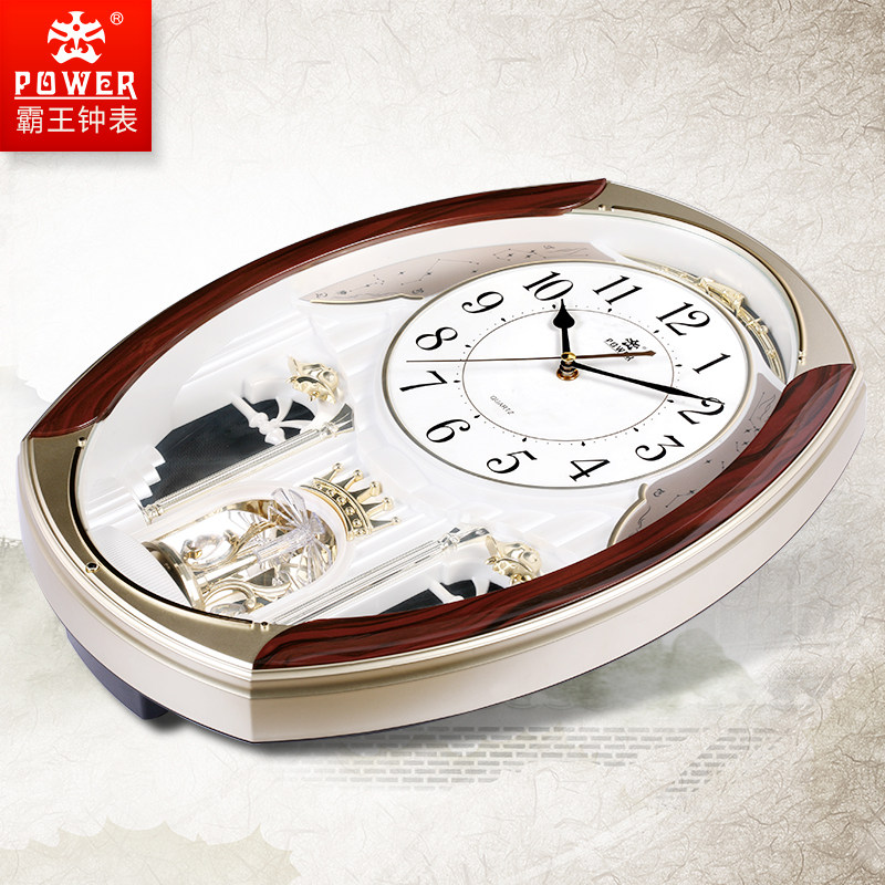 霸王欧式钟表静音挂钟大气家用客厅时钟音乐整点报时石英钟装饰表