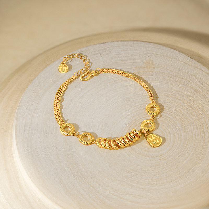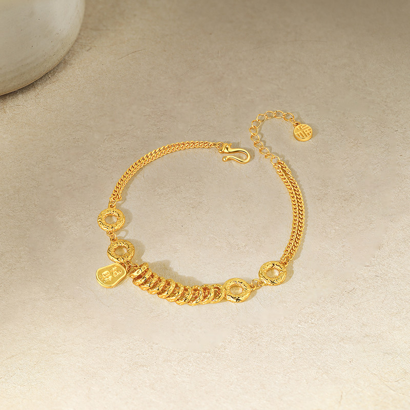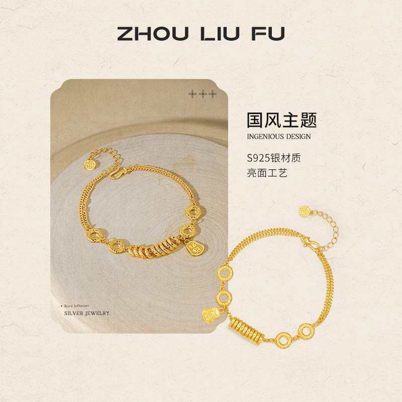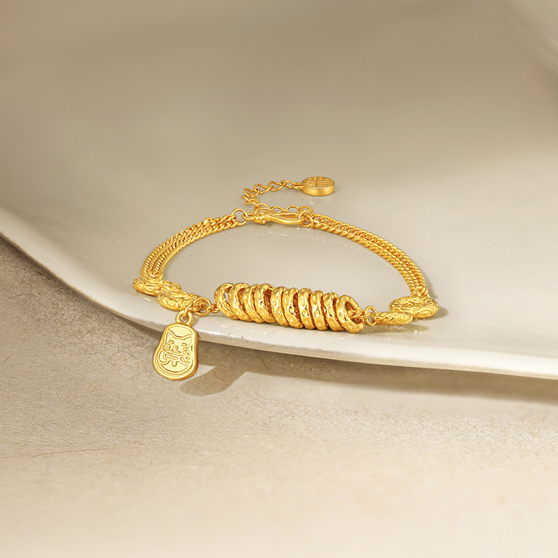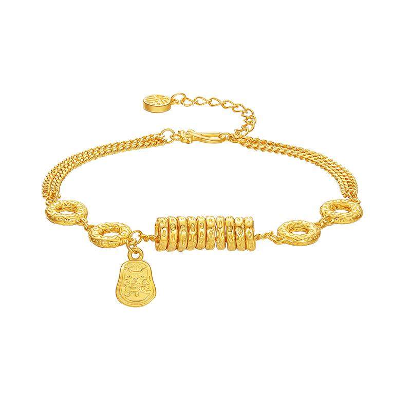 周六福金刚杵小盘缠手链女黄金色手饰S925银百搭送女友礼物