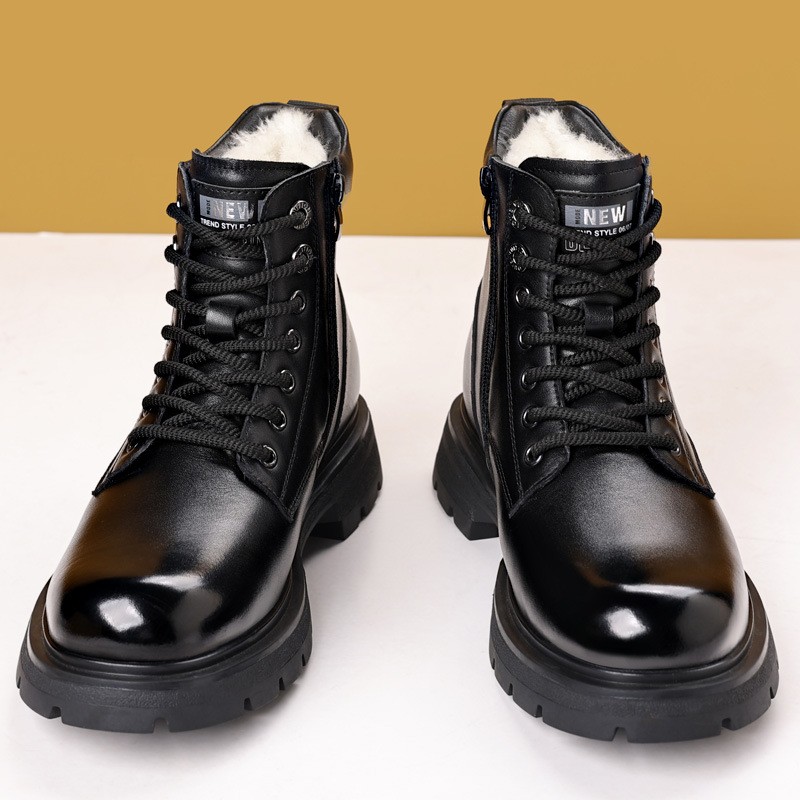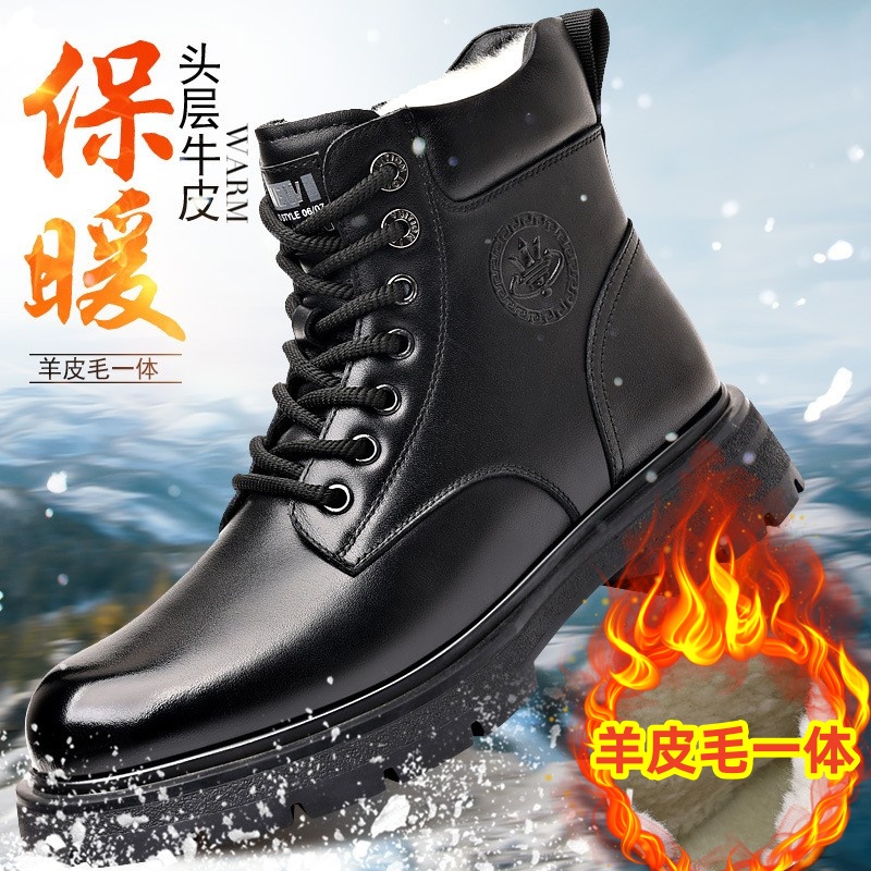 头层牛皮马丁靴男士真皮棉鞋冬季羊皮毛一体加绒保暖工装靴雪地靴