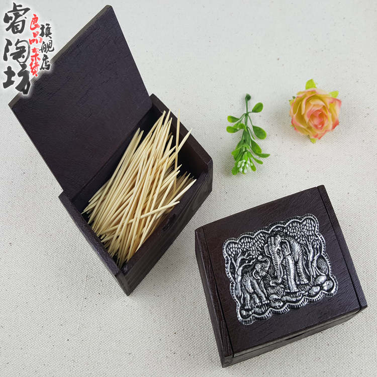 泰国复古木质牙签盒方形特色手工艺品家居客厅收纳盒创意摆件特价