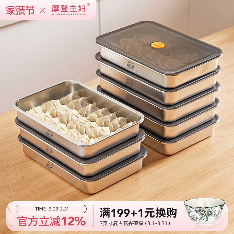 摩登主妇不锈钢饺子冷冻收纳盒食品级冰箱专用馄饨水饺速冻保鲜盒