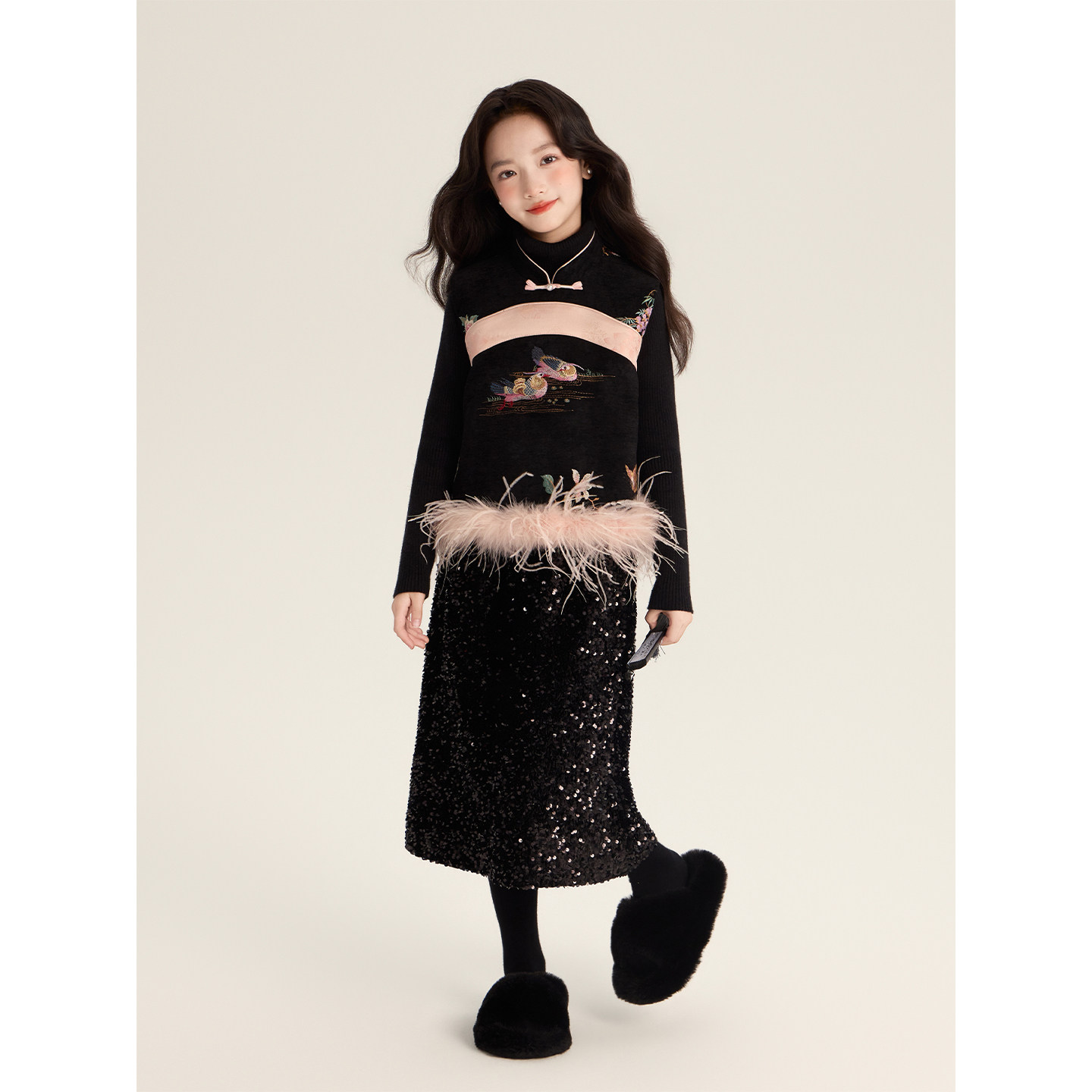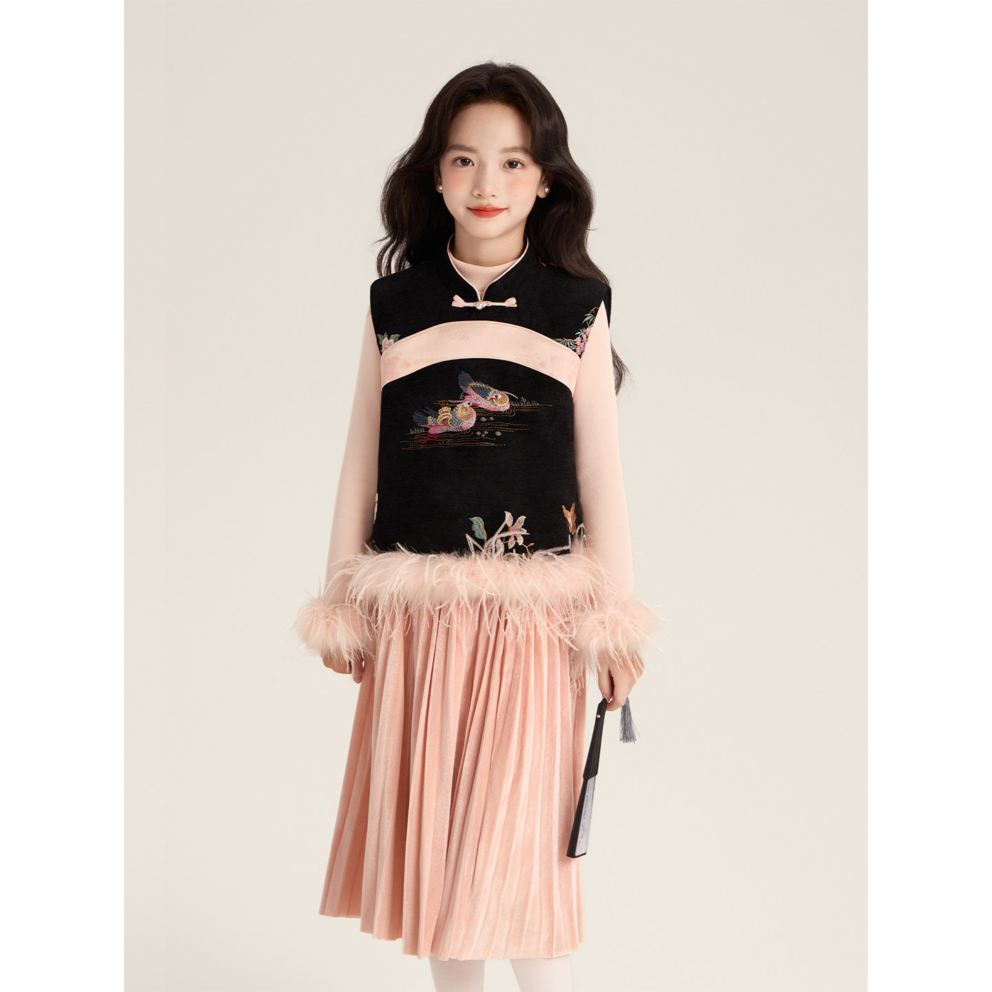 Amybaby女童上衣冬季2025新款儿童新中式单排扣设计感拼接马甲