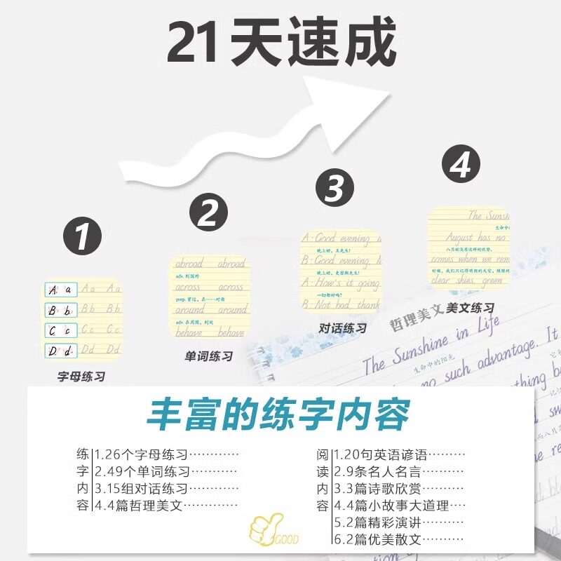 墨点练字宝意大利斜体英文字帖龙文井英文字母单词钢笔练习本常用字体中小学生成人入门临摹书法练习硬笔凹槽字帖赠消字笔正版书籍