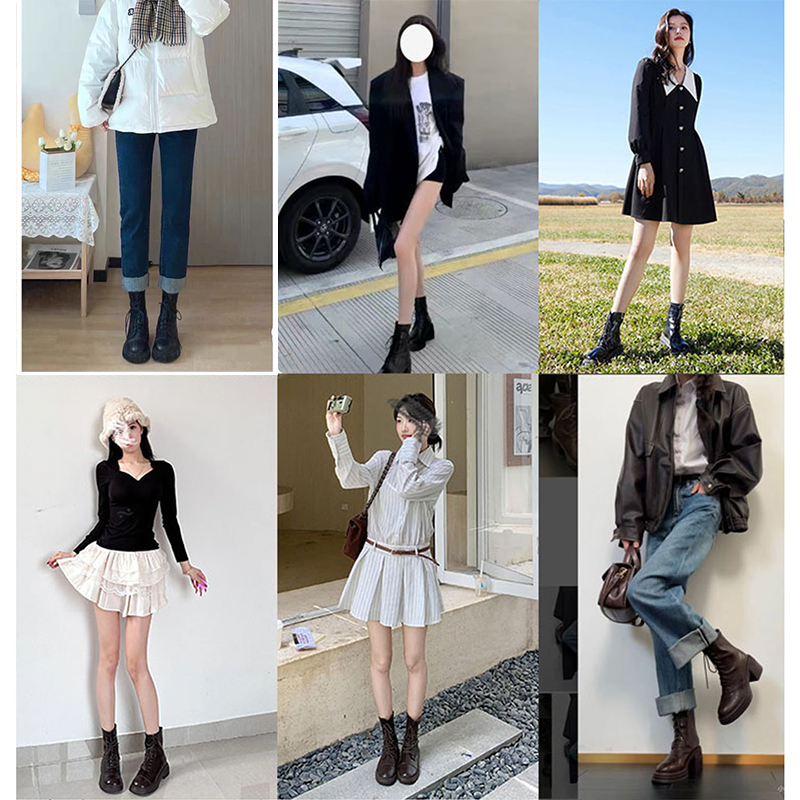 羊皮版~厚底马丁靴女2025新款黑色内增高短靴小个子高跟瘦瘦靴子
